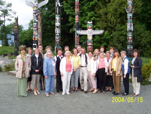 Hier ein kurze Zusammenfassung über die herrlichen Tage in Vancouver. Nachdem die einzelnen Teilnehmer/innen über den Freitag per Flugzeug/Auto/ Bus zu unterschiedlichsten Zeiten ankamen, trafen sich zwischenzeitlich einige interessierte und nicht ortskundige Damen und Herren zu einer Führung im Anthropologischen Museum auf dem Unigelände — und es hatte sich gelohnt! Auf den" Spuren des Raben" wurden wir mit den Unterschieden der einzelnen Indianerstämme und deren Traditionen vertraut gemacht. Die dafür angesetzte Zeit war natürlich zu kurz. Doch werden einige beim nächsten Besuch in Vancouver dieses Museum bestimmt wieder aufsuchen. ![]() Am Abend fand ein Empfang statt dank des Generalkonsulats Vancouver. Herr Generalkonsul Hans Michael Schwandt begrüßte alles Teilnehme/innen aus nah und fern. Bei Wein und köstlichen Häppchen konnten sich die einzelnen Lehrer/innen kennenlernen bzw. wiedersehen. ![]() Ein weiter Höhepunkt des Abends war die Verabschiedung unseres Fachberaters Karli Süss. ![]() Sabine Häfke hatte fleissig gedichtet und komponiert und einer kleinen Gruppe von uns schnell im Gebüsch vor dem Museum die entsprechendes Zeilen beigebracht. Eine tolle Leistung, Sabine! So sangen wir dem Karli ein Abschiedslied, das alle sechs Fachberaterjahre beinhaltete. Es war ein lustiger Abend und natürlich hatte Karli seine Gitarre mitgebracht und uns ein letztes Mal besungen. Wir werden es vermissen! ![]() Der Samstag fing gleich um 8 Uhr mit einem guten Frühstück an, bei dem es alle möglichen Leckereien wie Obst, Hörnchen, Muffins für alle Geschmäcker und natürlich den unvermeidlichen Kaffee oder Tee gab. Ein eifriges Schnattern lag über dem Raum, und Ilse Spangenberg musste öfters an ihr Wasserglas klopfen, bevor die Konferenzteilnehmer zur Ruhe kamen. Denn gleich nach dem Frühstück fing die Arbeit für alle an: die Workshopleiter sowie die Teilnehmer waren den ganzen Tag beschäftigt. Zuerst hörten wir von Ilse Spangenberg einige Daten über die Organisation des KVDS und andere administrative Sachen, gefolgt von den verschiedensten Workshops:" Braingym" von Hildegard Schieweck, und "Grammatik spielerisch" von Bernd Schliephake, "Galli Theater" von Katharina Riemann, bei dem alle Teilnehmer aktiv mitmachen mussten, und was mit viel Lachen verbunden war. Nach der ersten Kaffeepause war André Oberlé mit "Portfolios zur Förderung der Sprachkompetenz" dran, was allgemein als sehr interessant befunden wurde und sehr humorvoll und ansprechend präsentiert wurde. Und nach dem Mittagessen, das auch wieder sehr liebevoll aufgetischt war (vielen Dank an Isolde Winter und Sohn!), sprach Karl Süss über Schüleraustausch Kanada/Deutschland. Danach hörten wir etwas über das Multiplikatorennetz von Ute Renters (Goethe Toronto); dann "Wie plant man ein Schülerprojekt von Anfang bis zum Ende" von Brigitte Martin-Mendonça, und nach noch einer Kaffeepause und Kuchen (wir müssen alle sehr müde gewesen sein!) hörten wir von Gerlinda Ringe über die Grundlagen des Fremdsprachenunterrichts. Zuletzt wurden Zeugnisse von den verschiedenen Deutschen Sprachschulen in Kanada gezeigt und besprochen. Kaum standen wir von unseren Stühlen auf, um uns etwas die Füsse zu vertreten, war auch schon der Bus zur Stadtrundfahrt vor der Tür des St. Mark's College. Wir konnten die Baukonjunktur im Zentrum Vancouvers bewundern, und unser Busfahrer, ein Mitglied der "First-Nation"-Leute, gab ausserordentlich interessante Erklärungen über die verschiedenen Totempfähle, die wir im Stanley Park bewundern konnten. Natürlich hatten wir eine tolle Sicht auf die farbreiche Blumenpracht, und ganz besonders die blühenden Rhododendren waren die Fahrt wert. Das war ein sehr schöner Abschluss des Samstags, zusammen mit dem anschliessenden Essen beim Chinesen. Was war das für ein uriges Erlebnis! Zehn Leute sassen an einem runden Tisch — wir hatten übrigens vier Tische belegt — etwas eingeengt, aber die Stimmung war äusserst heiter, und es fehlte nicht an Kommentaren über das einmalig authentische chinesische Essen. Aus welcher Gegend in China kam es denn? Offensichtlich war das Motto Sossen, und wahrscheinlich können wir uns noch alle an den Sossenhummer auf Nudeln erinnern. Nachdem wir alle gut gesättigt waren, fuhren wir zurück zur UBC, um unsere müden Knochen auszuruhen. Nach einem herzhaften Frühstueck fand am Sonntag die KVDS Jahresversmmlung statt. Anschließend wurde der LEITFADEN, ehemals von Fachberater Rupert Barensteiner ins Leben gerufen, kritisch diskutiert.Viele Schulen nutzen ihn als sog. Rahmenplan und finden ihn als solches sehr wertvoll. Leider reichen zu wenig Lehrkräfte eigene Materialien ein, um daraus eine Materialsammlung entstehen zu lassen. Eindeutig ist das Copyright ein Grund dafür. Es wurde eine weiter Arbeitskonferenz vorgeschlagen, um die Arbeit mit dem LEITFADEN zu aktualisieren. Rückblickend war die Konferenz ein grosser Erfolg. Informationen wurden ausgetauscht, Kontakte geknüpft und neue Initiativen und Ideen für das neue Schuljahr mit nach Hause genommen. ![]()