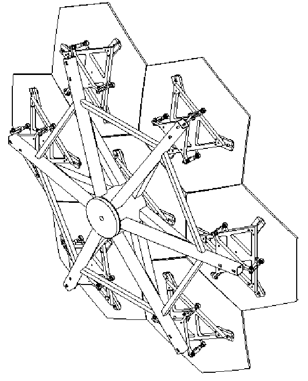 Rear side of the secondary mirror showing the support structure for the 7 facets.