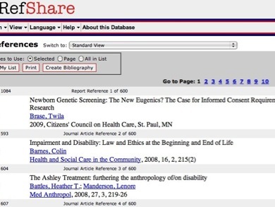 This RefShare bibliography was created as a resource for students, scholars, and all others interested in disability ethics. It is searchable and results can be easily downloaded.