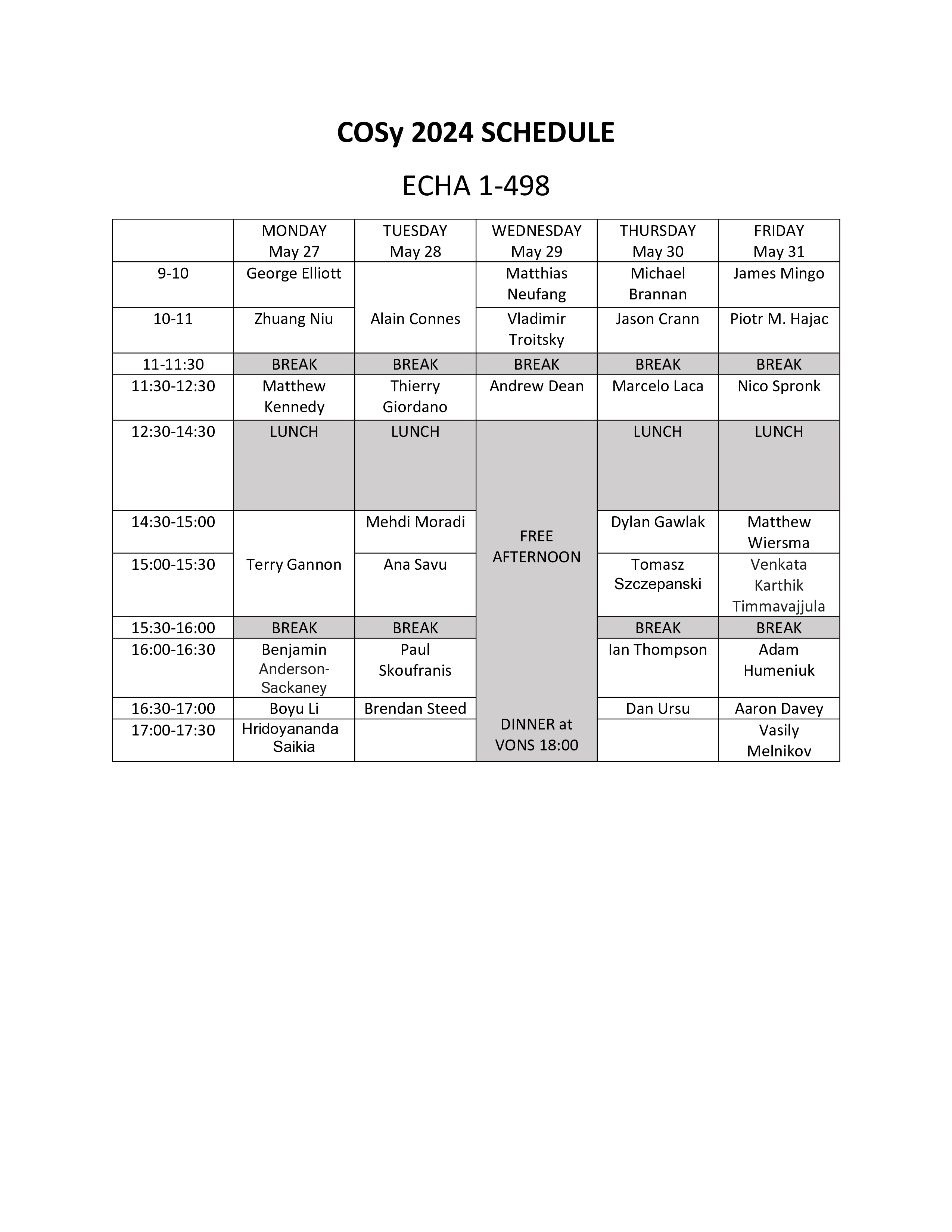 | 14:30-15:30 | Contributed Talks (ECHA 1-498) | No Talks | Contributed Talks (ECHA 1-498) | ||