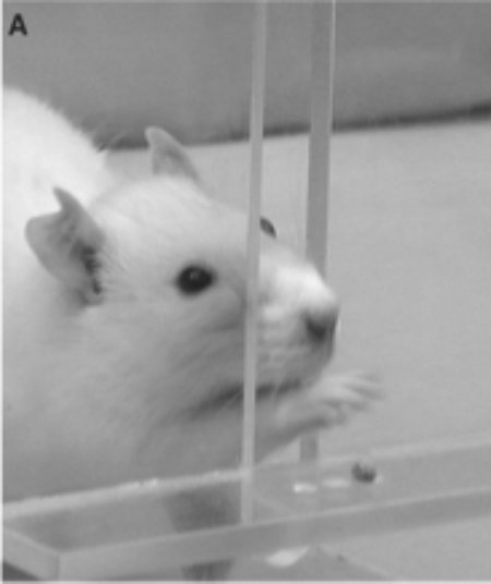 We use a variety of approaches to measure the sensorimotor or cognitive function of rodents. Most commonly, we use sensitive sensorimotor tests (such as single pellet skilled reaching, shown at left) to measure the recovery of motor functions after stroke and treatment.