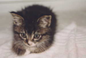 When Tigger was new to the house, she developed a fondness for the middle of the bathroom mat. That meant that at any time anyone could have walked into the bathroom to find a tiny kitten all balled up. Unfortunately for Tigger, when that happened, it also meant that she got shoo-ed out. |