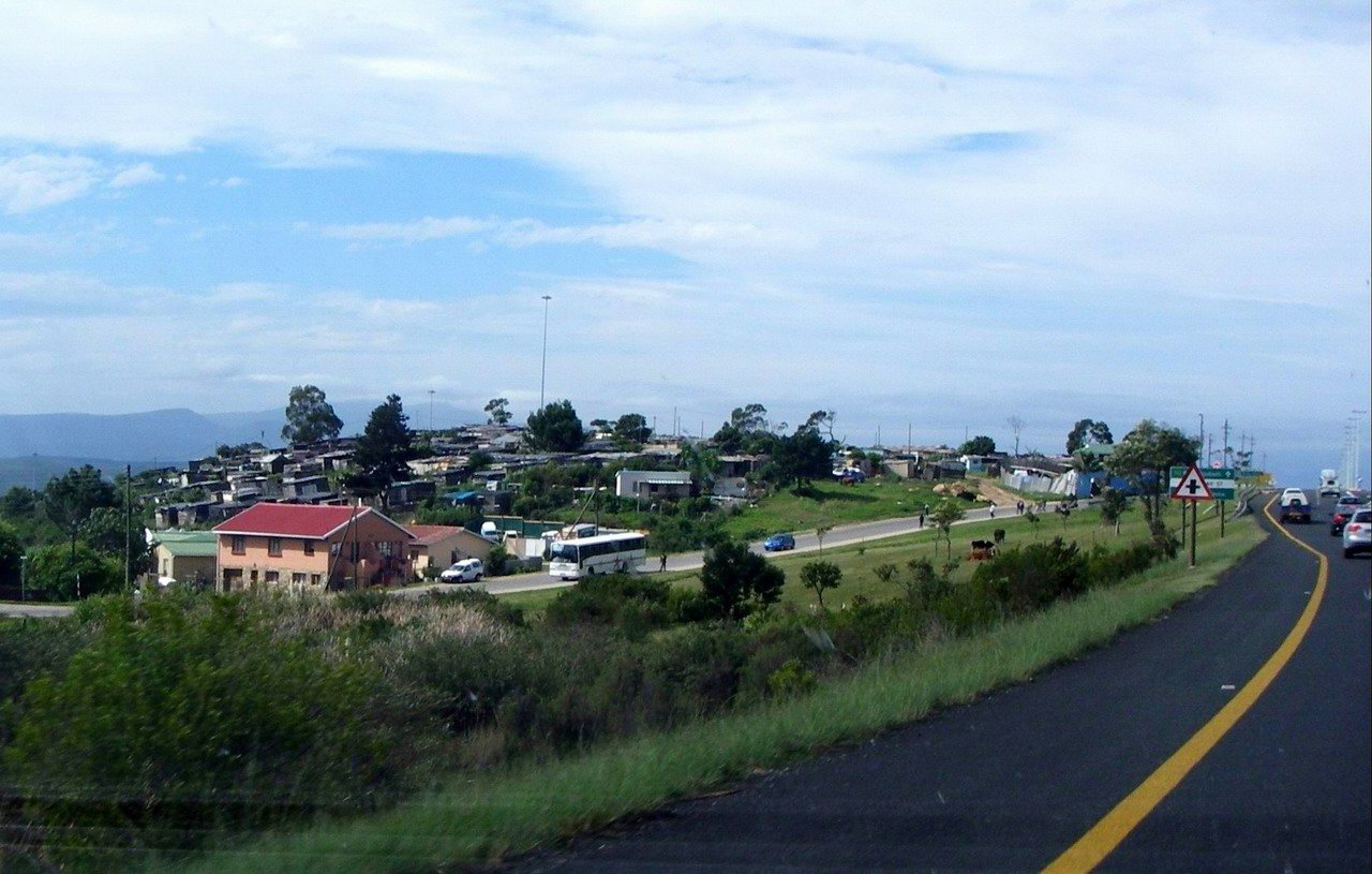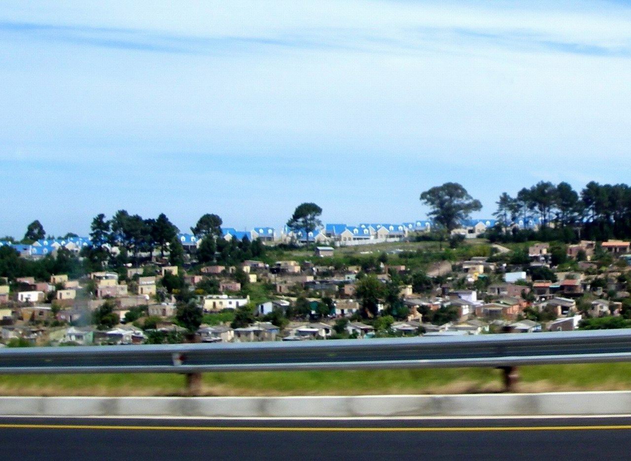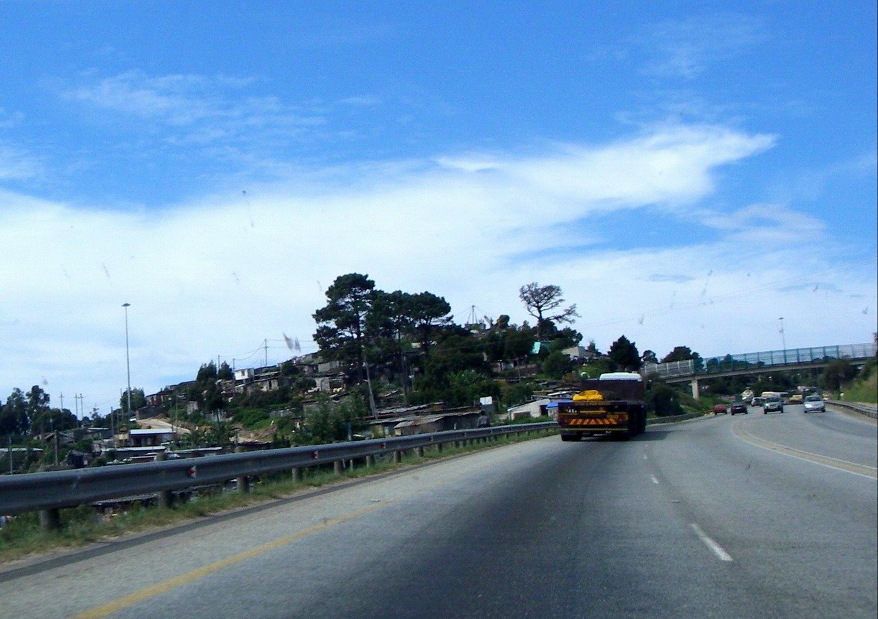 Whizzing past the townships on the modern highway |