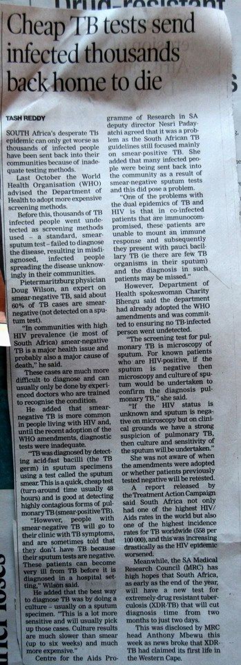 For lack of a cheap test, deadly TB strains develop |