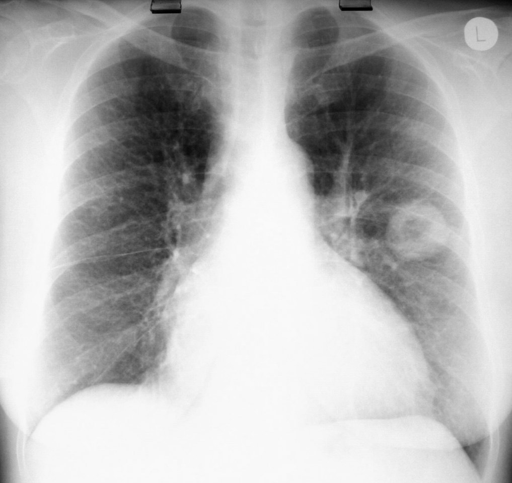 Cavitating mass in L lung -- for fun, let's poke this with a needle and see if we catch TB! |