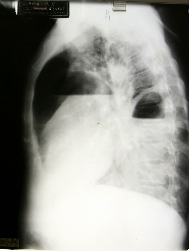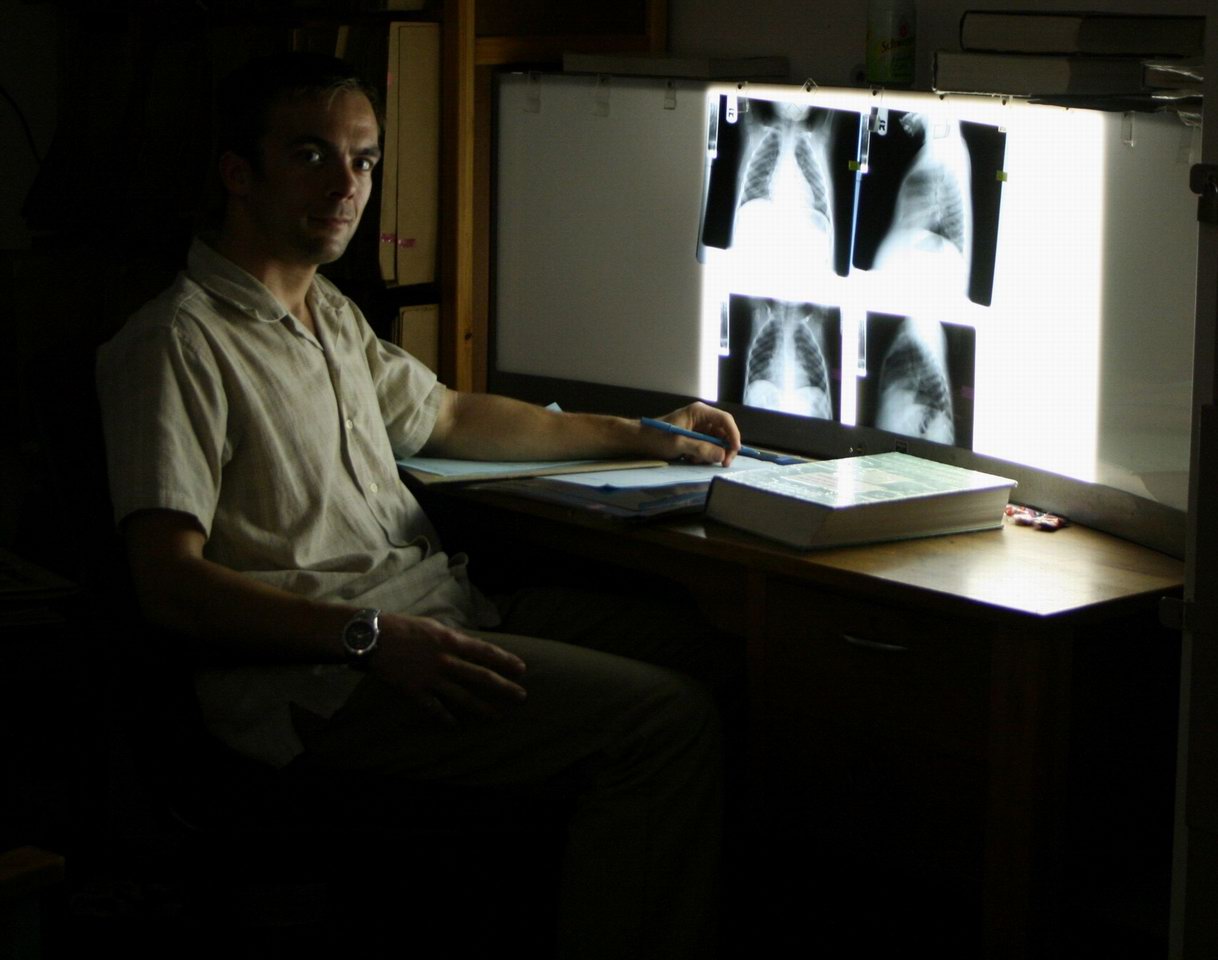 | Unfortunately, other aspects of being a radiologist in the public system in Cape Town are not so rewarding -- chief among these being budget restrictions and the previously mentioned bizarre purchasing priorities which result in a woeful lack of proper CT scanners in particular. The MRI unit is almost the same one as we have at home, a modern 1.5 T Siemens unit, but there is only one. And while the pediatric ultrasound department is justifiably proud of an ultra-modern machine as good as any back home, the ultrasound used in mammography looks like it was built in World War II. Again, this sharpens your skills as a clinician and radiologist -- when it's hard to get a scan done, you really think about whether it needs to be done, and when the equipment is old and slow you have to be more careful about your technique. The registrars are also more adept at hands-on things, since they have to do all their own ultrasound scanning and start all their own IV's for CT scan contrast dye injections. The hands-on work can be hazardous -- two radiologists have caught TB recently, one case perhaps related to long and close contact in small rooms doing ultrasound procedures. The other case is almost certainly from doing "CT FNAB's" (Fine Needle Aspiration Biopsies). In these procedures, a long thin needle is placed under CT guidance into a mass within the lung, to extract a few cells for assessment under the microscope. If the mass is not a tumor it is usually a TB granuloma, and when this is punctured you can imagine the thousands of bacteria spraying into the air. No surprise, then, that the person doing a dozen CT FNAB's in a day, every week, would catch TB.