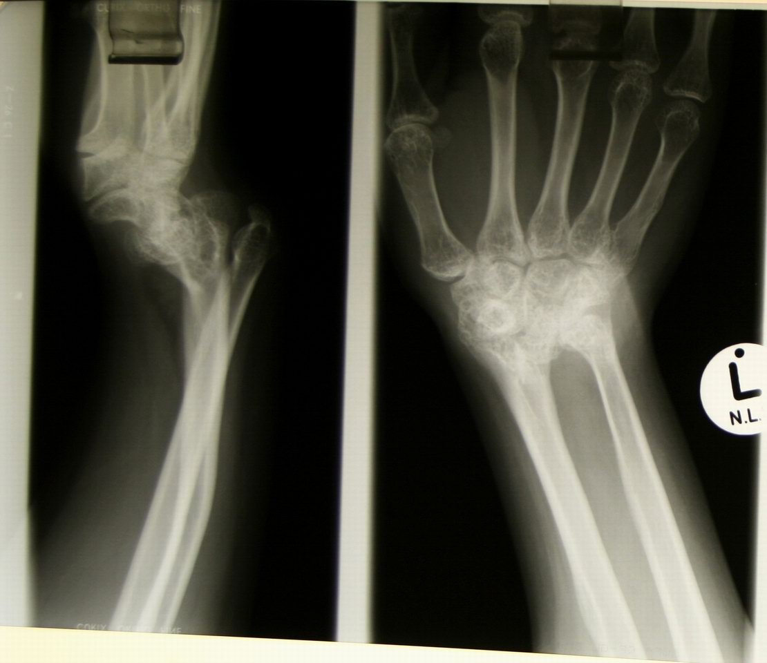 Patient with Madelung deformity -- worse on the left since she is left-handed. |