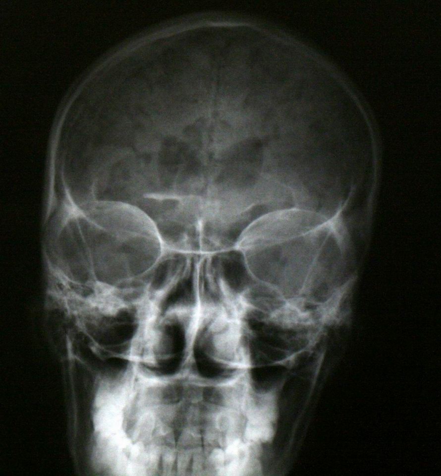 Air in the skull from a stabbing -- "pneumocranium" |