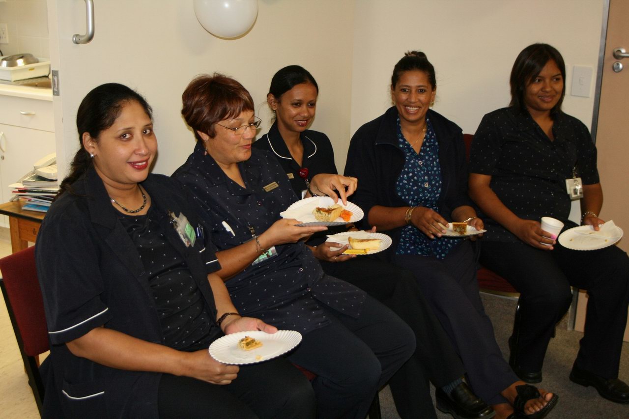Sandileh (2nd from R) joins the exodus of trained staff, but everyone keeps their spirits up |