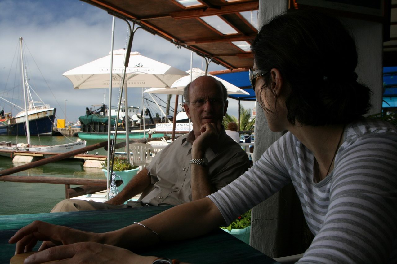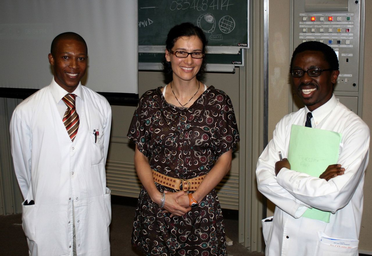 | Diana's experience in internal medicine was dominated by HIV and TB, in a very busy clinical environment. Dr. van zyl Smit (Roal) organized visits to Jooste and Vredenberg hospitals (the latter was a fine day trip which I also went on and which culminated in a delicious dockside lunch in Saldanha!) and some wondrous pathology was on offer. If you are proud and penniless and haven't got a car, it's amazing how sick you will let yourself get before finally seeking help -- often much too late for anyone to do anything. Fortunately, the government has recognized that antiretroviral drugs do prevent HIV, reversing an earlier stance that could be summarized as "let them die" -- and even life insurance companies have just agreed not to deny claims based on HIV status, as long as people show that they have sought treatment. Patients are very, very sick and the cases are often very sad; Diana often had weighty tales to tell at night and I was thankful again for my choice of radiology as a field. Roal and the incredibly talented Dr. Ntusi, a resident who should have been a Rhodes scholar in Diana's opinion, held the fort together and it was an intense and mind-broadening experience for Diana.