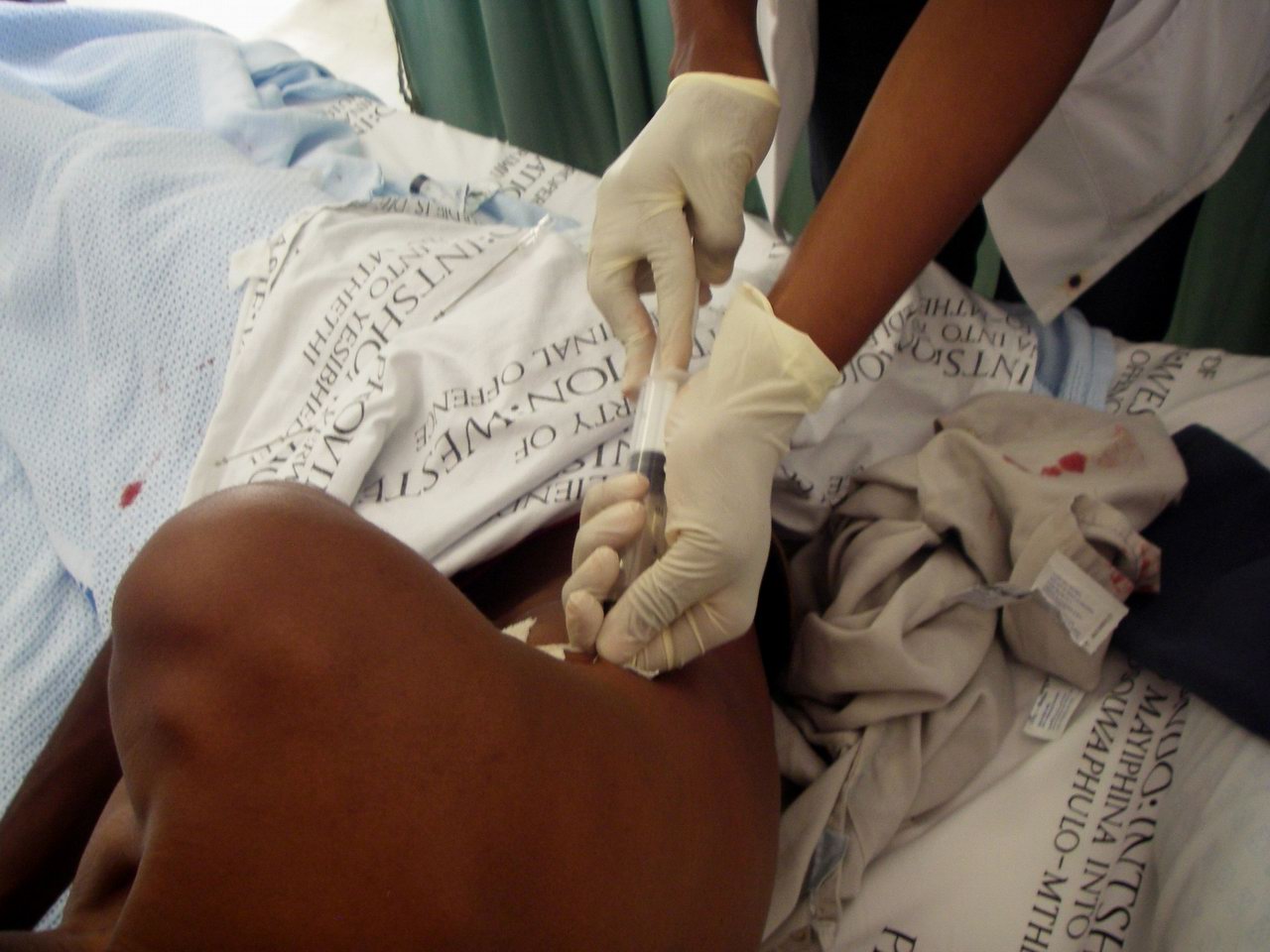 Examining multi-drug-resistant TB patient. Note the total lack of isolation precautions. |