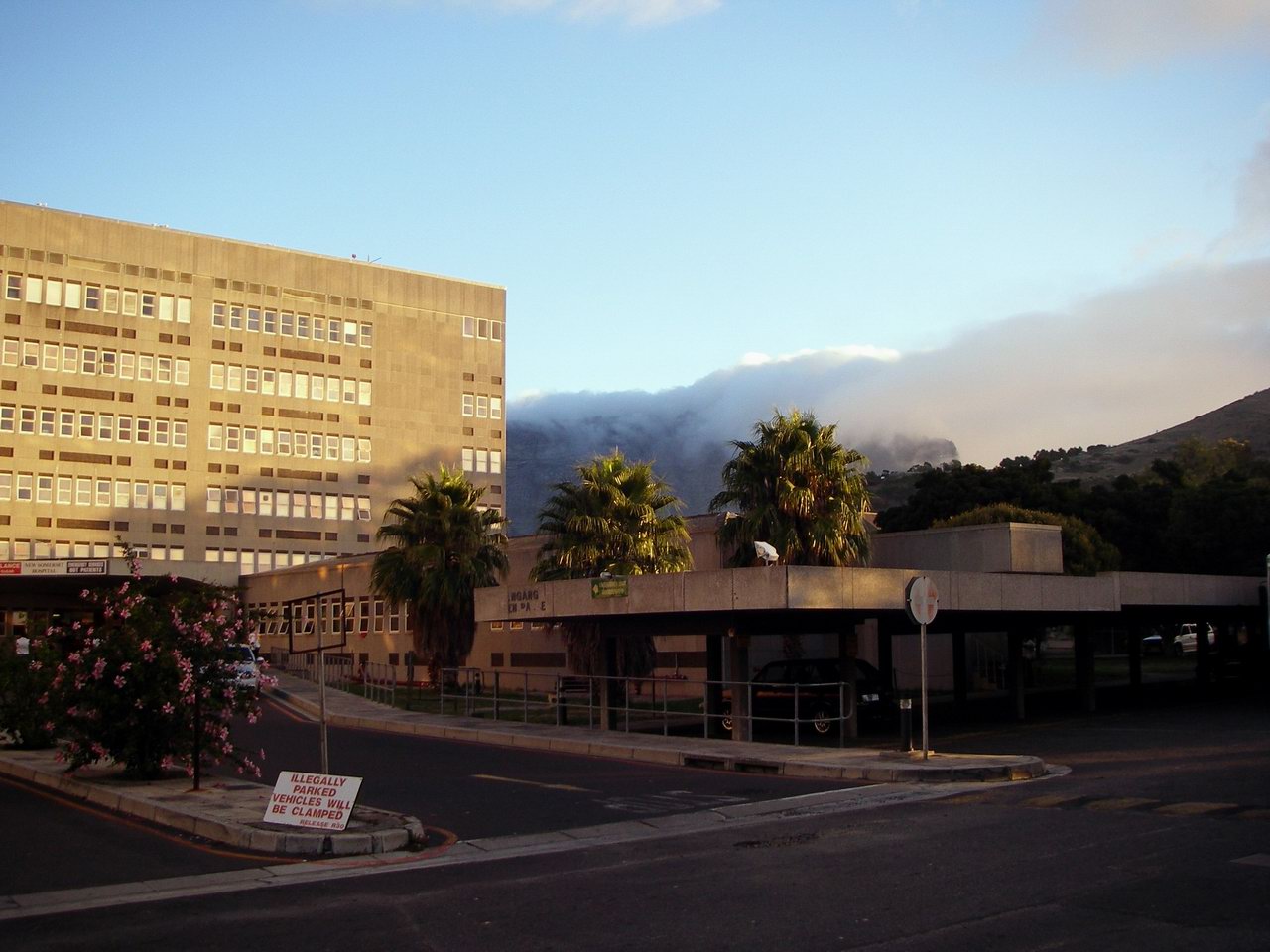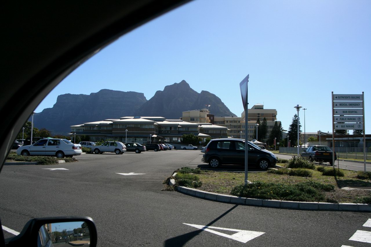 | Groote Schuur hospital (GSH) is one of the largest teaching hospitals in Cape Town, rebuilt to a capacity of ~2000 beds in the 1980's at about the same time as the University Hospital in Edmonton was built, with a similar layout including a mechanical floor between each "real" floor which means walking a lot of stairs. In the 1960's, GSH was the site of the first heart transplant in the world, and it is still a big transplant centre. But also in the 1960's, GSH had separate entrances and separate wards for black and white patients. The location is fantastic, backing onto Table Mountain with a panoramic view of Cape Town, close to wealthy suburbs and far from the townships. Parking is tightly controlled and if you can't get a pass for the parkade, it's not just inconvenient, it's unsafe -- you have to walk a few blocks outside the hospital at uncertain hours in not the best neighborhood, and incidents happen. I was told that one cause for these parking-lot muggings is that patients, once discharged, have no way to get back to their homes in the townships and get cash any way they can. Urban legend? Anyway, the hospital itself is spacious and comfortable, with lecture theatres and a snack shop, several eating areas and air conditioning. As a tertiary hospital, patients can't get here without referral from a secondary hospital, so the problems are highly filtered and patients very complex.