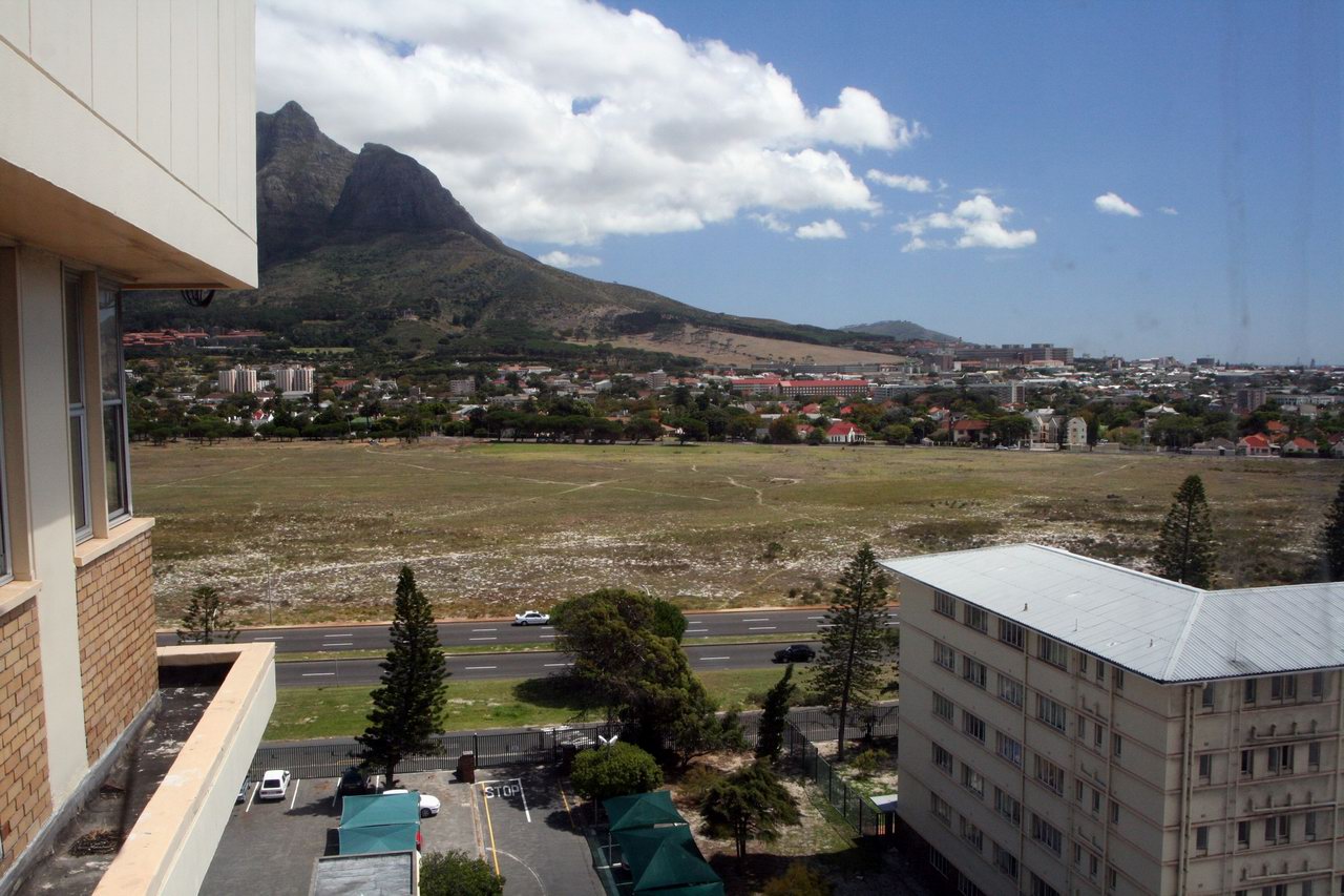 View across Rondebosch Common from Red Cross Hospital to Groote Schuur Hospital on the slopes of Table Mountain |
