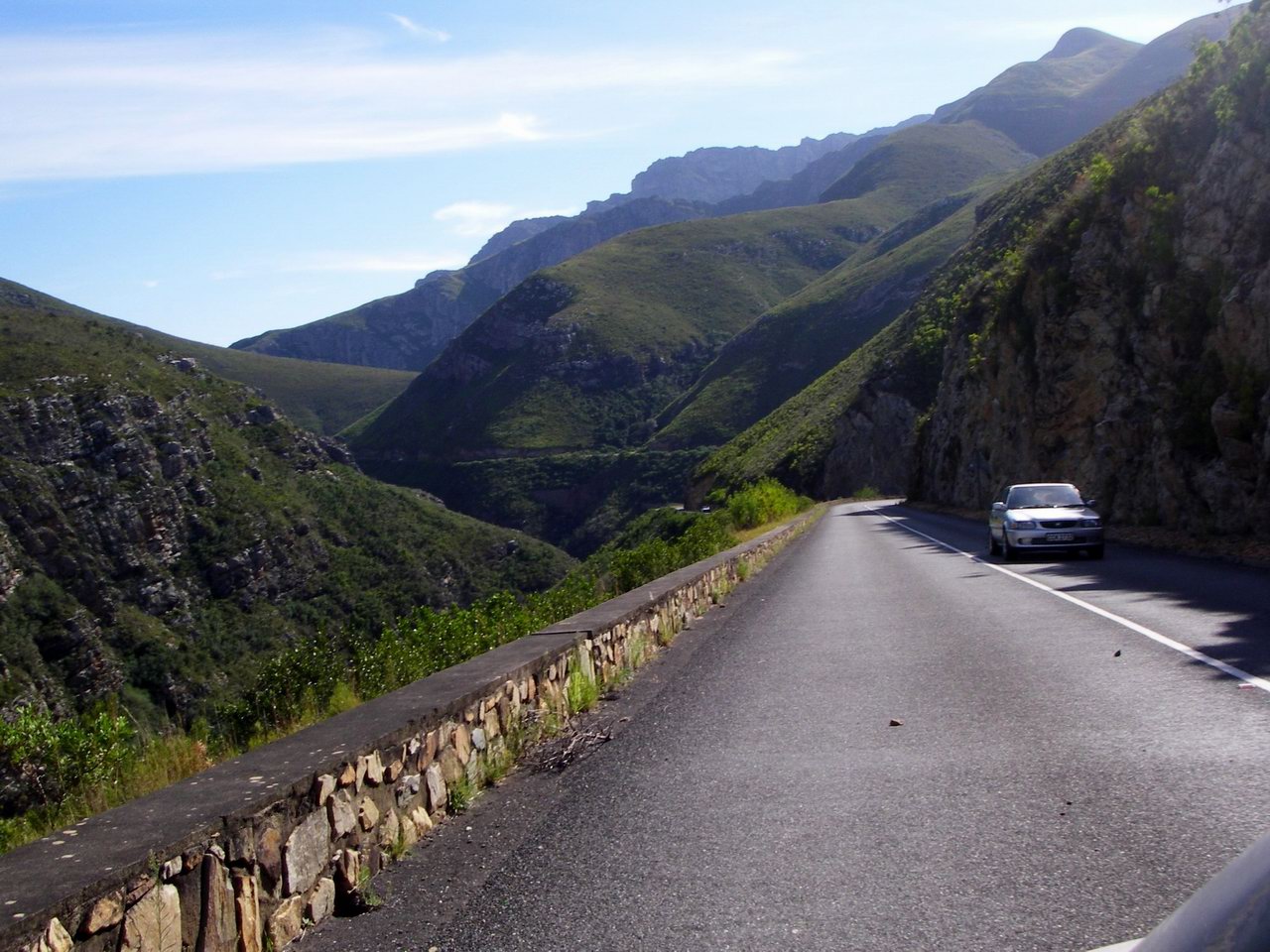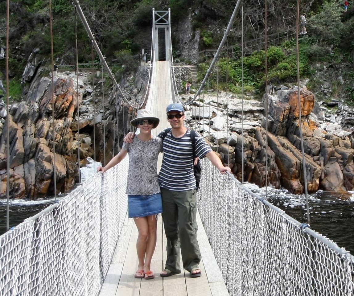 | When our month in Cape Town ended we hit the road in a 1.4 L Ford Fiesta for a 5000 km journey across South Africa. This started in the spectacular wine country just 1 hour east of Cape Town, and we lunched at Franzhoek before settling in for two nights at a very relaxing spot in Swellendam, a small town at the foot of a dramatic mountain range on the western tip of the "Garden Route" scenic drive. Lovely hiking and delicious bobotie (savory mincemeat with toppings including tomato, onion, banana and sweet chutney), and some of my favorite peaceful times on the trip. Although as a married couple we now generally book double rooms with ensuite bathrooms, we are still budget travelers, as we were reminded each time we visited the moldy bathroom at this little place, with its defective toilet and plugged shower. Otherwise, paradise!
