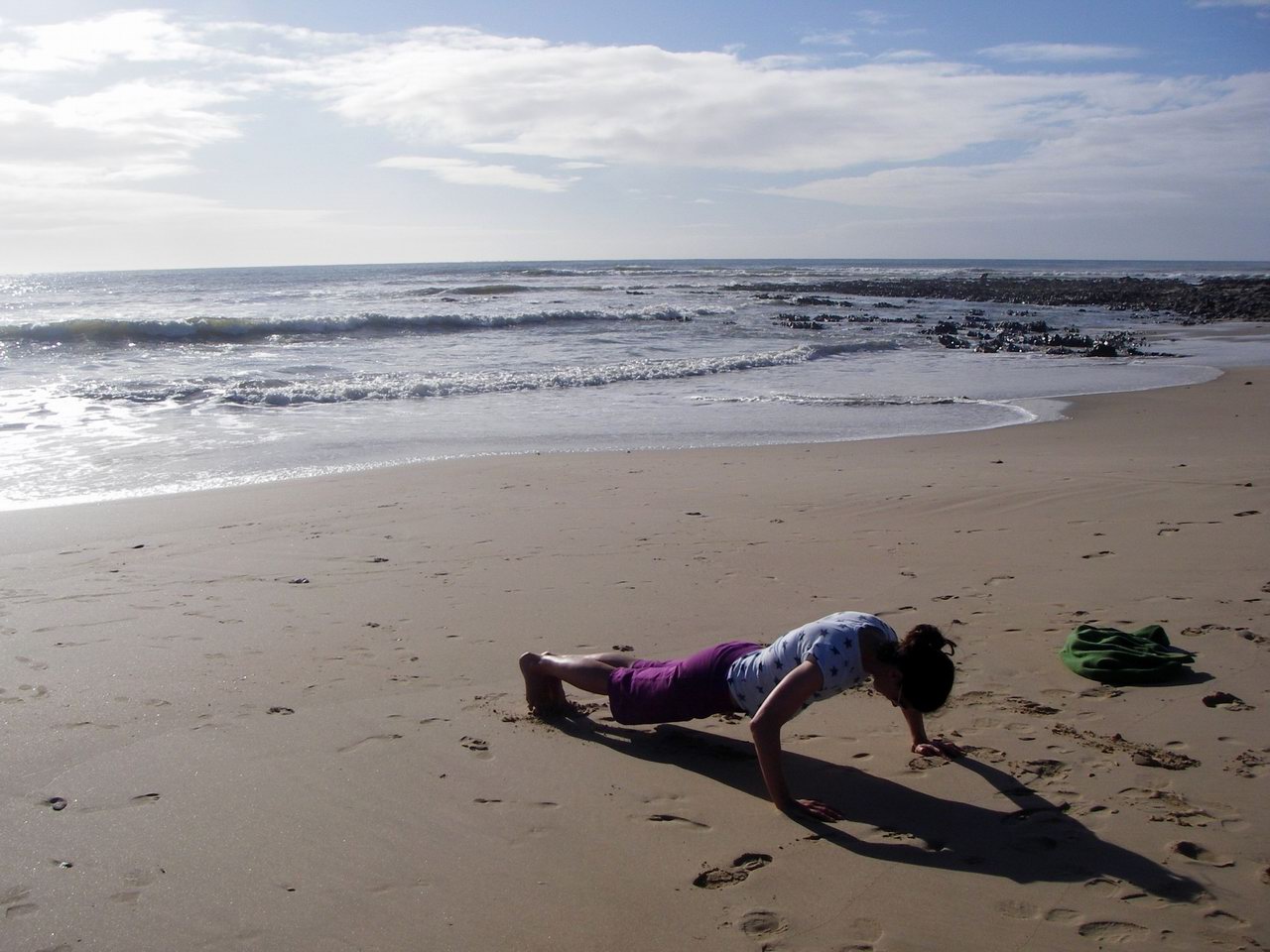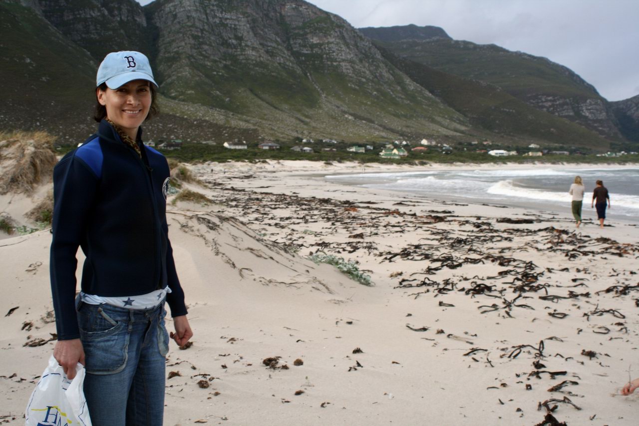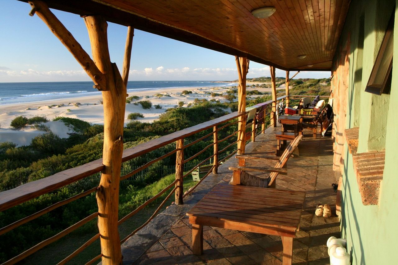 | The surfing paradise of Jeffrey's Bay is not nearly as beautiful as "Plett" and has become a bit overdeveloped, with discount surf-clothing outlet shopping and so many seaside homes that one part of the beach should be named "Poop Beach", with mountains of fused excrement washing up on shore as if someone's septic tank exploded. But other parts of the beach are clean and many beautiful shells can be found. Our hostel was in a particularly gorgeous location "on the point."