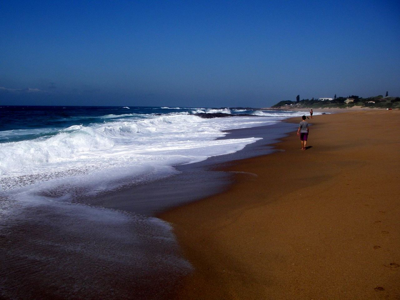 | Our favorite spot on the coast was south of Durban, with warm water and a gorgeous little cabin in the town of Umtentweni just off the beach, perfect for long romantic walks and, if you are competition-ready, surfing in the powerful swell. The waves and beach were particularly dramatic since heavy tides two weeks ago destroyed most oceanside ports, shark nets and docks all the way along the Durban coast -- part of unusual weather throughout South Africa including strange Cape Town heat waves and torrential late March rains in the usually dry northeast. Global warming at work?