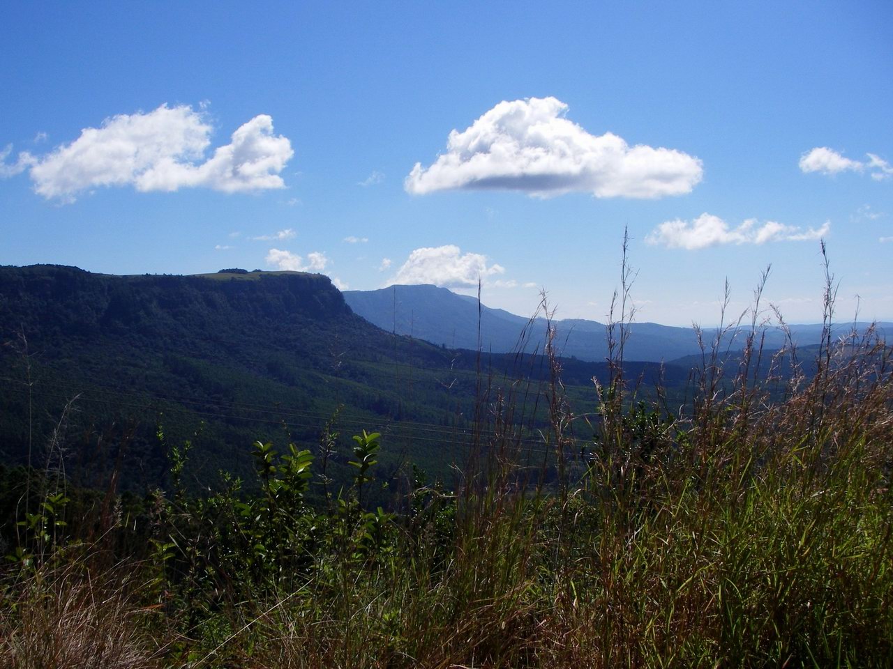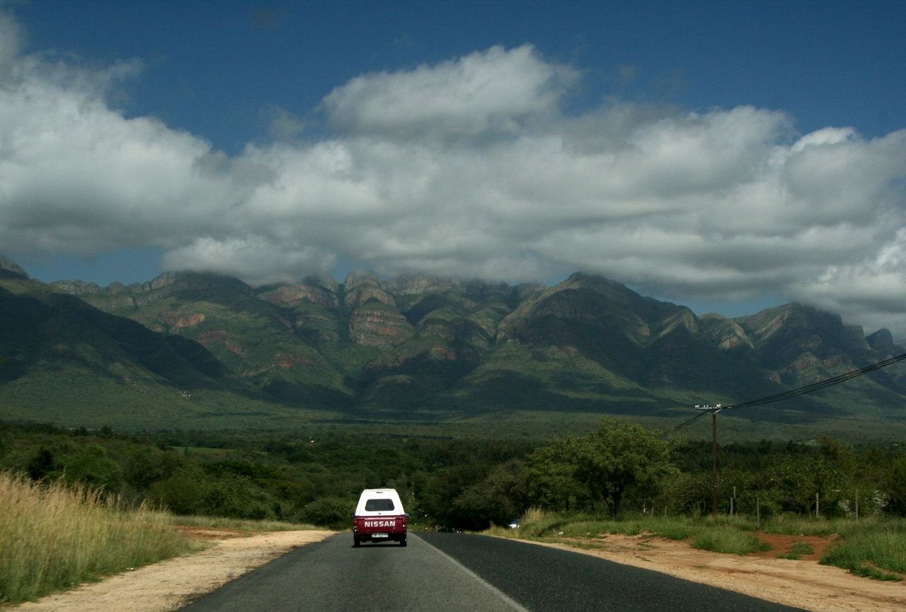| Due to dawdling along the coast we had to rush to our safari, driving 1000 km in one day north from the Durban coast to Kruger National Park in the northeast. The fact that this was possible in 11 hours driving shows how modern the roads in South Africa are (outside the Transkei). It was a beautiful journey across desert, plains and, surprisingly at the end, high mountain forests. We stayed in the town of Sabie, which resembles Revelstoke, BC -- at 1100 m elevation, a lumber town with damp climate and cool nights.