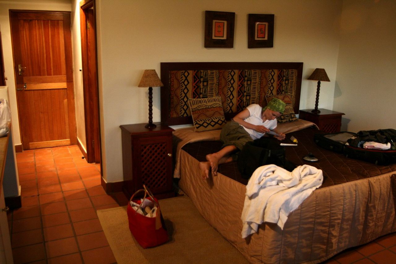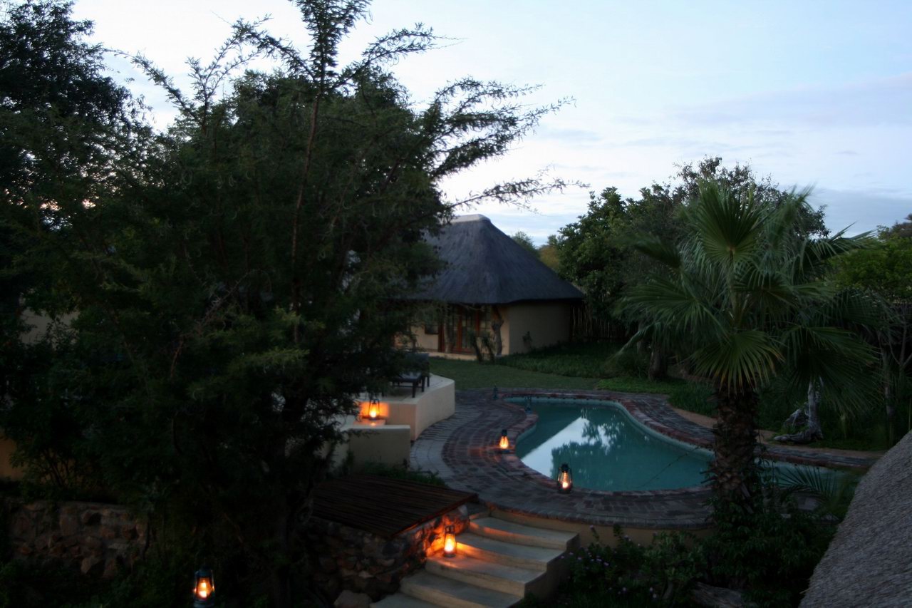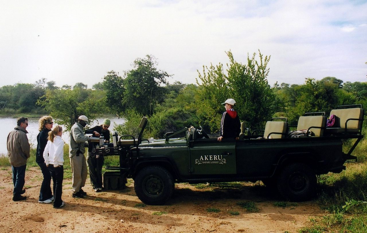 | The first lodge we stayed at, Akeru, is beautiful inside and the food was amazing; we lounged in the "honeymoon suite" overlooking the watering hole and watched the warthogs wander by. After two days in which we probably gained two pounds each per day, and what delicious pounds those were, we went to Gomo Gomo, which has far inferior accommodation (plugged shower drain, two single beds instead of the luxurious king size four poster one, etc.) but was $150 per night cheaper and actually has a better location, on a beautiful river which is alive with wildlife all day long. Bottom line: if you are going to Timbavati for romance, a place like Akeru is excellent -- if you are going mostly to see the animals, Gomo Gomo is your best value in the park. Kerri the super-ranger at Akeru went to heroic lengths to take us to the best sightings throughout the park, and we are grateful for that, but it is just easier if you are in the right spot to start with. We were always amazed at how the rangers & trackers could figure out how to get back to the lodge, on twisty little bush roads that always look the same.