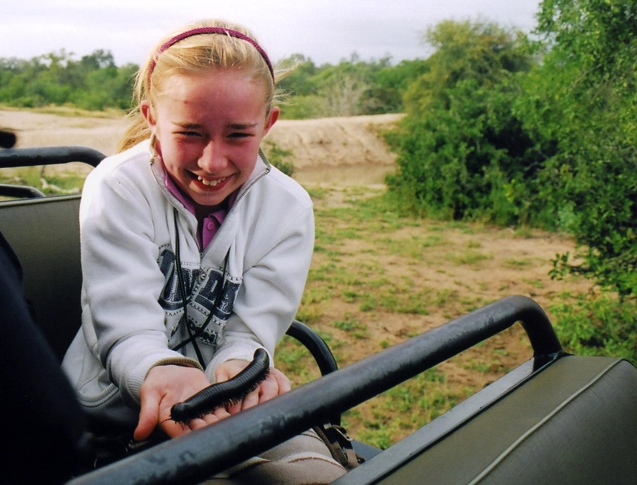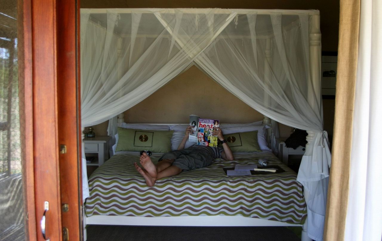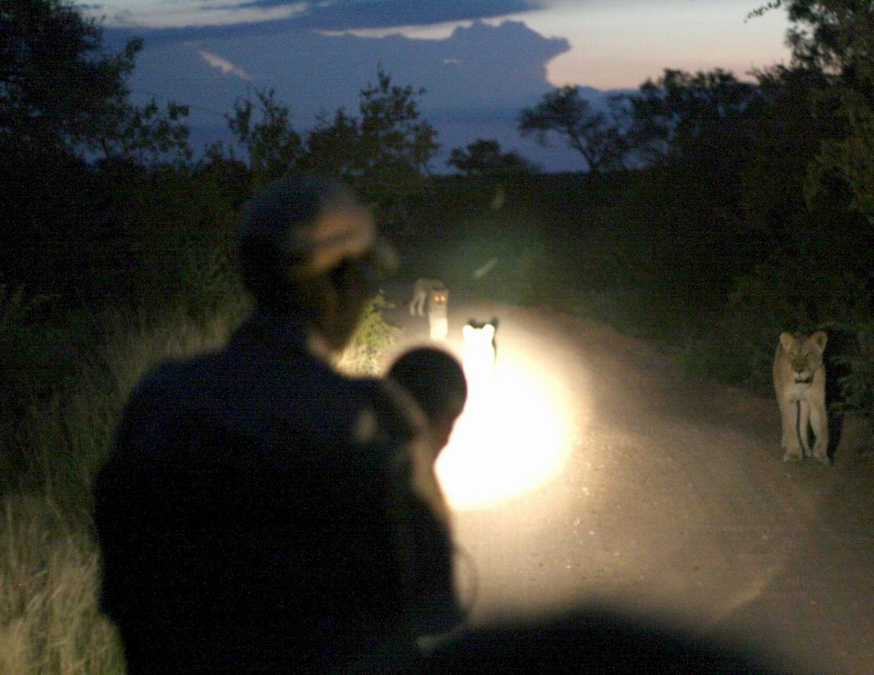 | The first lodge we stayed at, Akeru, is beautiful inside and the food was amazing; we lounged in the "honeymoon suite" overlooking the watering hole and watched the warthogs wander by. After two days in which we probably gained two pounds each per day, and what delicious pounds those were, we went to Gomo Gomo, which has far inferior accommodation (plugged shower drain, two single beds instead of the luxurious king size four poster one, etc.) but was $150 per night cheaper and actually has a better location, on a beautiful river which is alive with wildlife all day long. Bottom line: if you are going to Timbavati for romance, a place like Akeru is excellent -- if you are going mostly to see the animals, Gomo Gomo is your best value in the park. Kerri the super-ranger at Akeru went to heroic lengths to take us to the best sightings throughout the park, and we are grateful for that, but it is just easier if you are in the right spot to start with. We were always amazed at how the rangers & trackers could figure out how to get back to the lodge, on twisty little bush roads that always look the same.