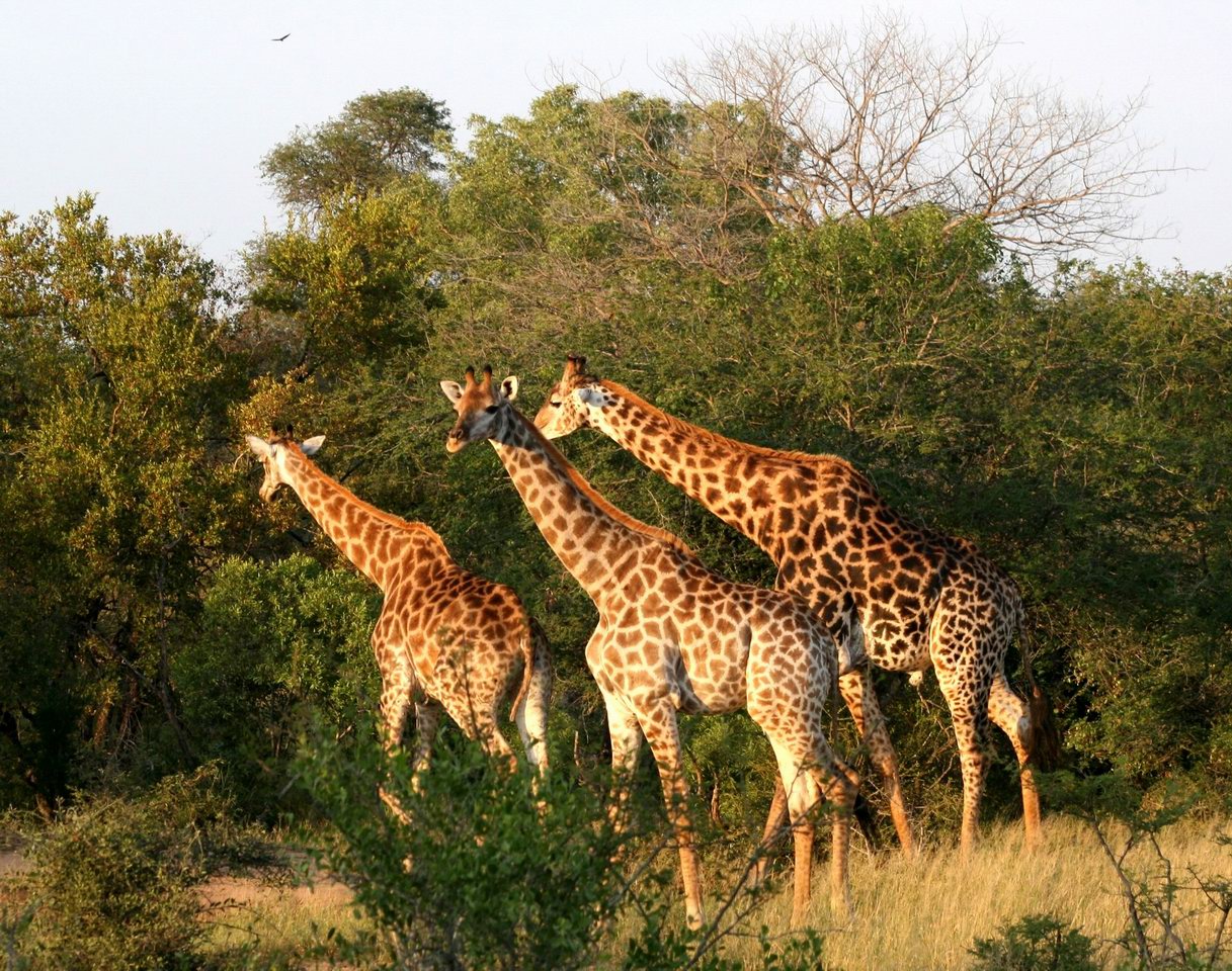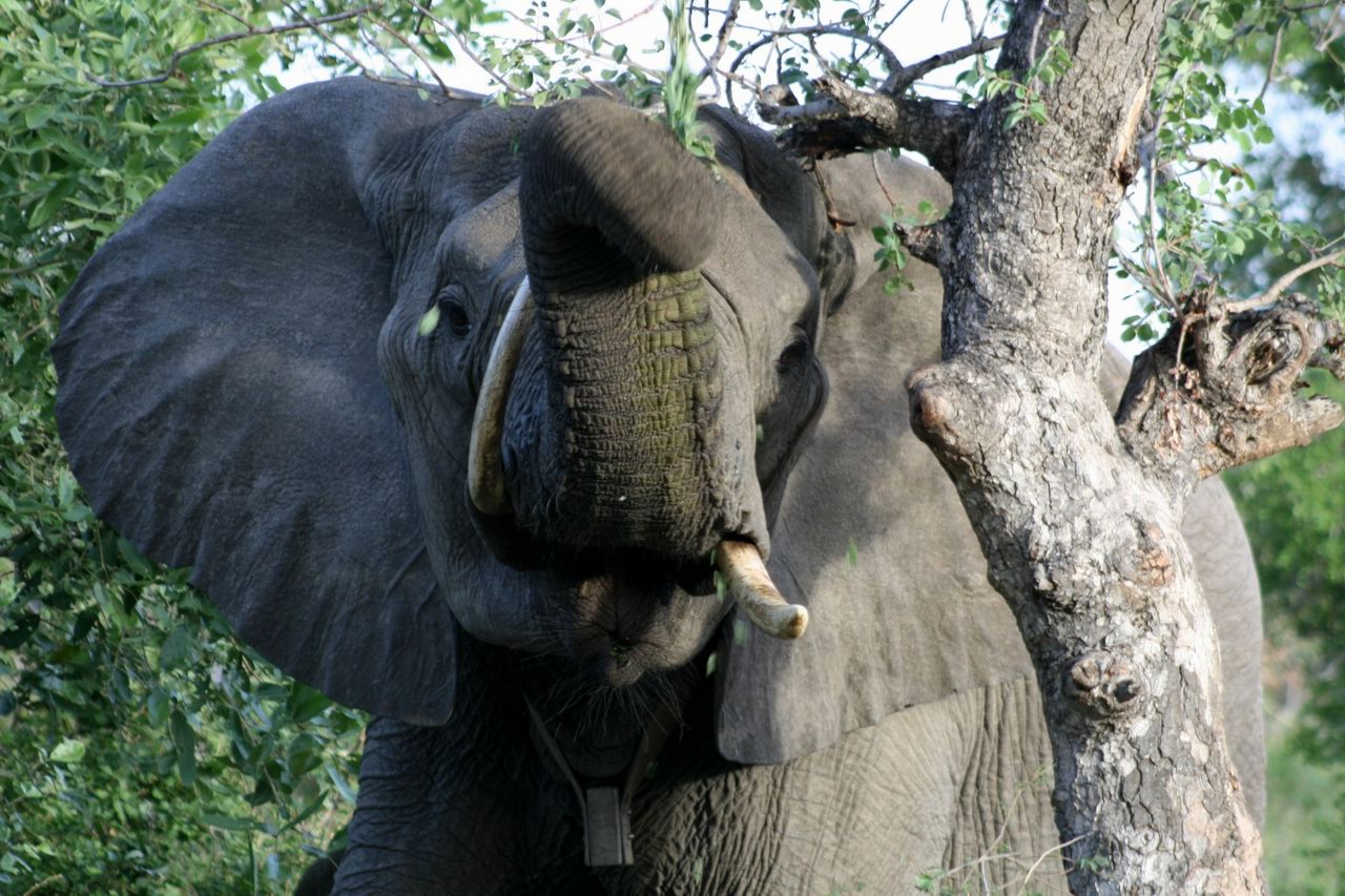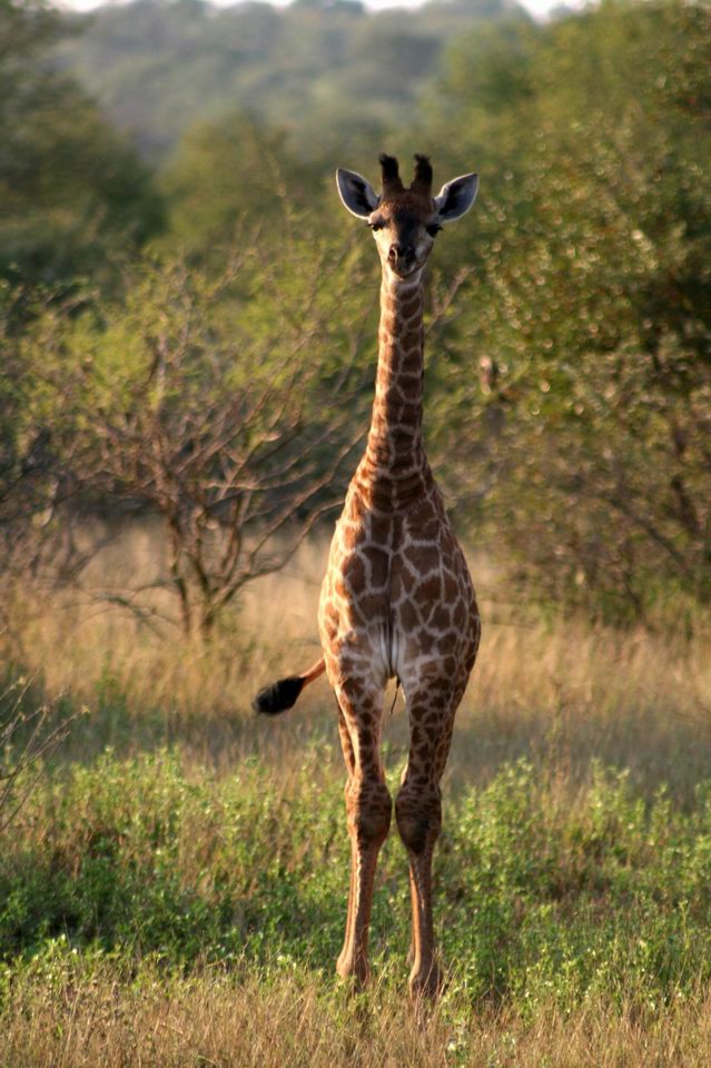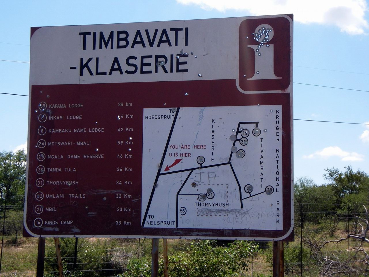 | Both safari lodges we stayed at were in Timbavati private game park, which is a huge tract of land just west of the Kruger National Park with no internal fences, so the game roam freely. Within Timbavati there are at least a dozen private lodges such as Akeru or Gomo Gomo, each owning a portion (Akeru = ~2000 ha, G.G. = ~12000 ha). The guests at each lodge go for game drives on 10-passenger open Land Rovers, with a ranger with a rifle and a radio, and often a local bush tracker in front, to see animals. Unlike in the national parks, the rangers know where the animals tend to go, the trackers can find them in the bush with amazing skill, and the rangers are allowed to go off-road, using the heavily fortified front end of the Land Rover to bushwhack, knocking over trees up to 10-12 feet high in pursuit of big game. This sounds terrible but the effect of the Land Rover is probably comparable to two rhinos or three elephants walking the same path -- those beasts are very destructive.