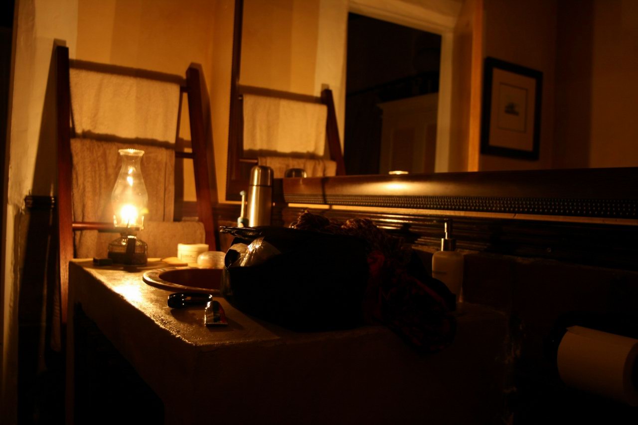 Romantic gas lighting (just enough electricity to recharge camera batteries) |