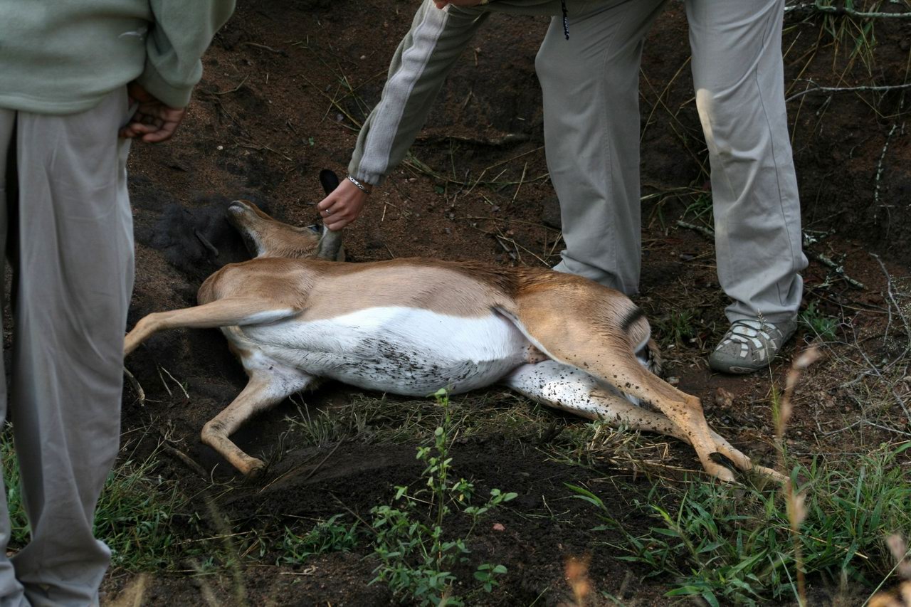 Sick deer with tetany and meningismus. Rangers sent someone back to shoot the poor deer and take blood samples (the buffalo and lions are catching bovine TB, and there is anthrax about as well) |