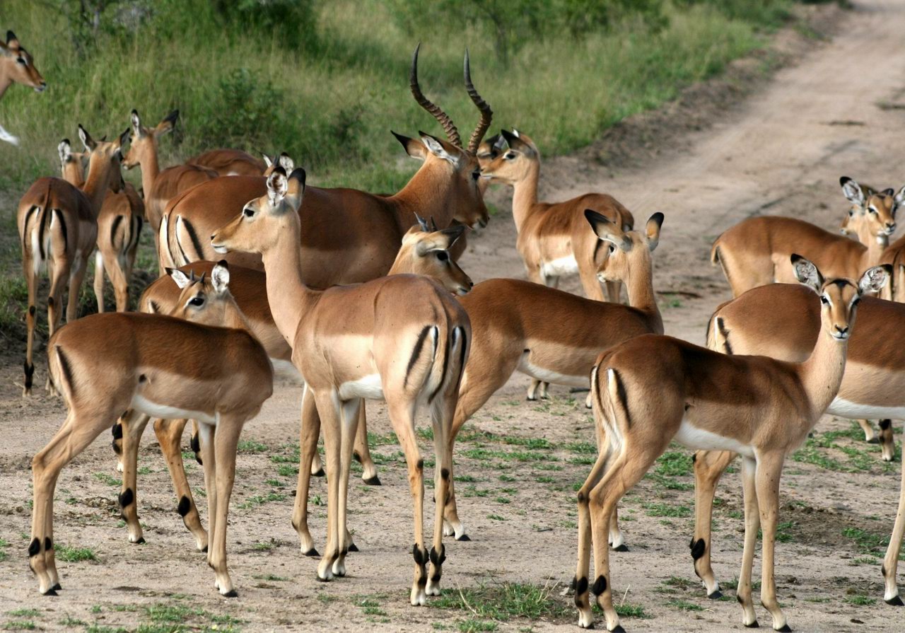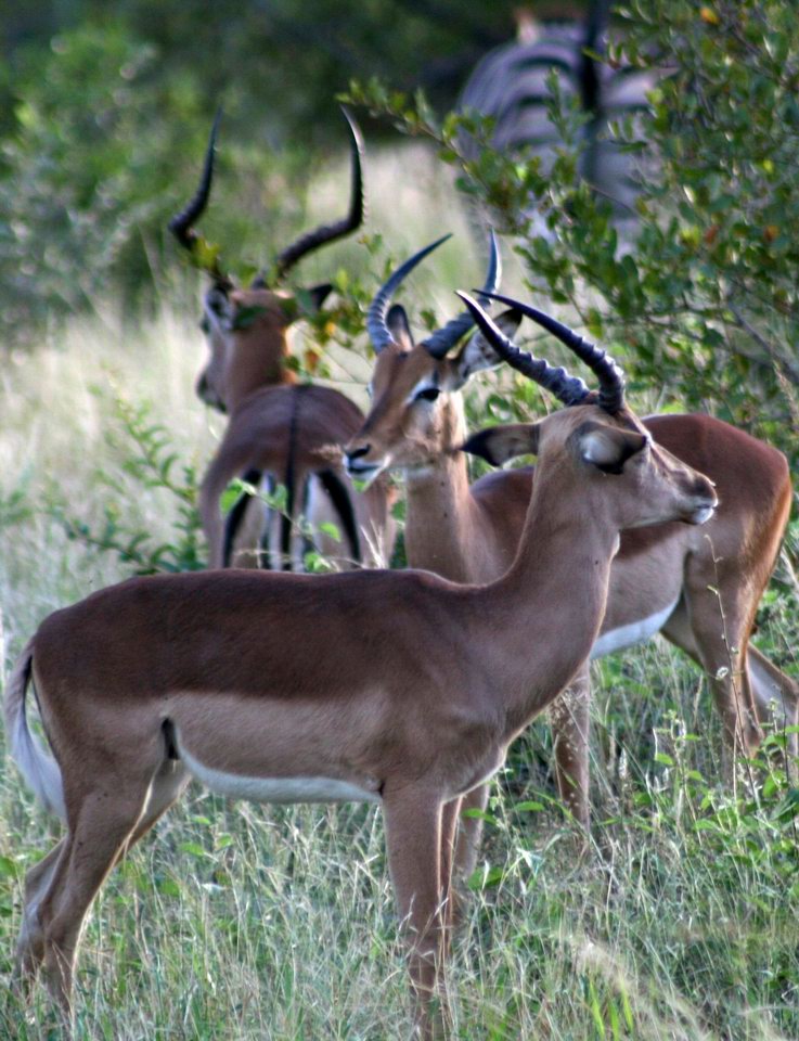 The impala (small deer) have an interesting harem system. Some lucky males get to each run with an entire herd of females, any of whom he can impregnate during mating season. The leftover males who couldn't find the females congregate in their own bachelor herd -- a lot of horns in the field!