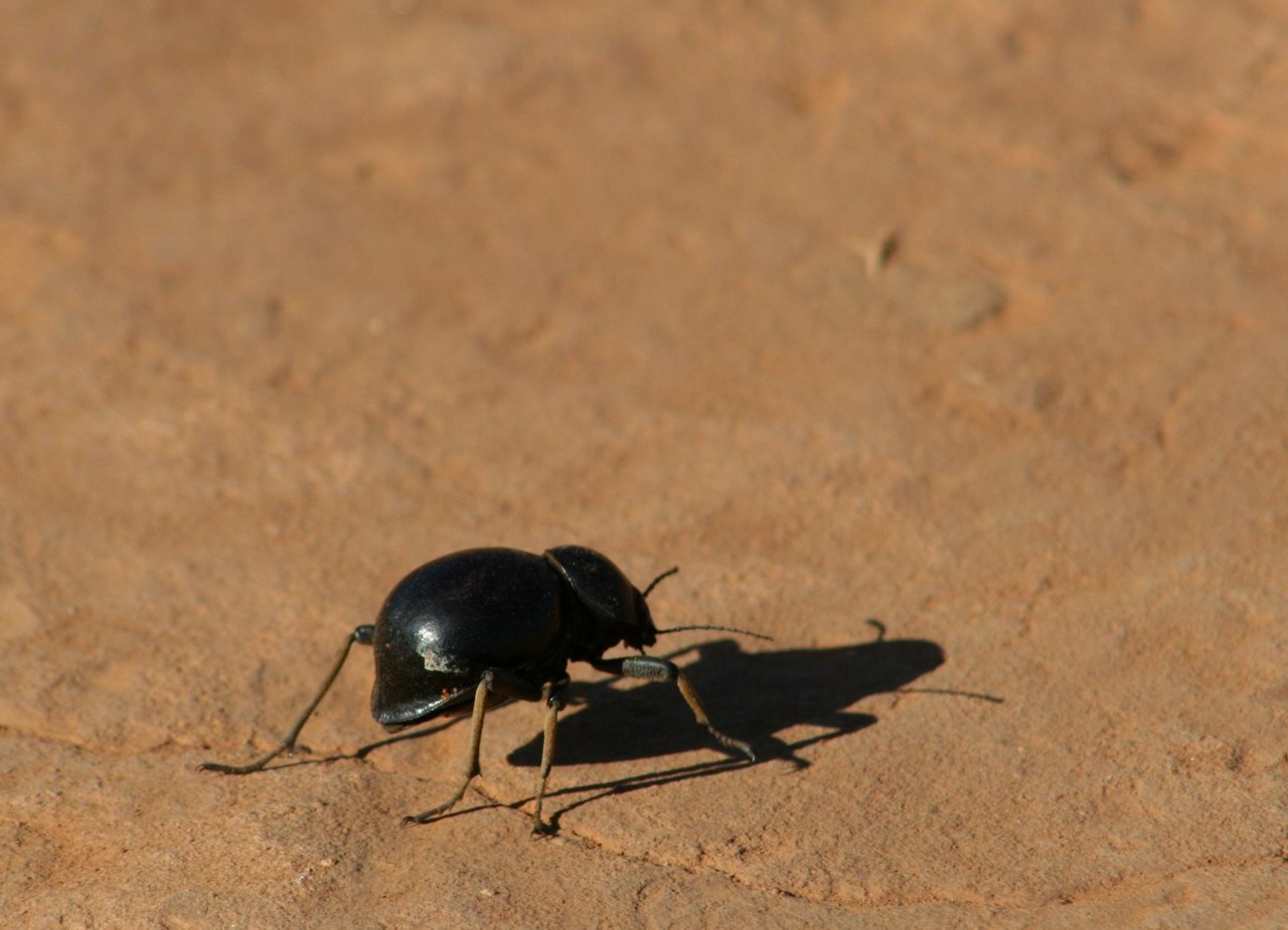 Dung beetle -- an elephant only digests 50% of its food so the dung has lots of nutrients left. |