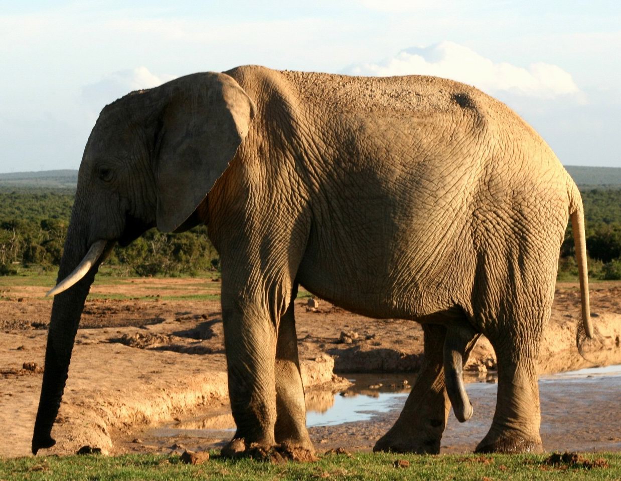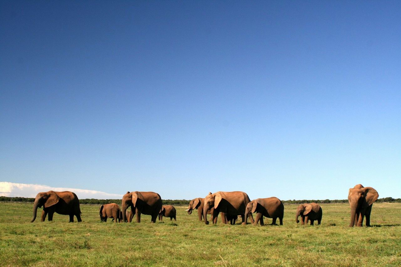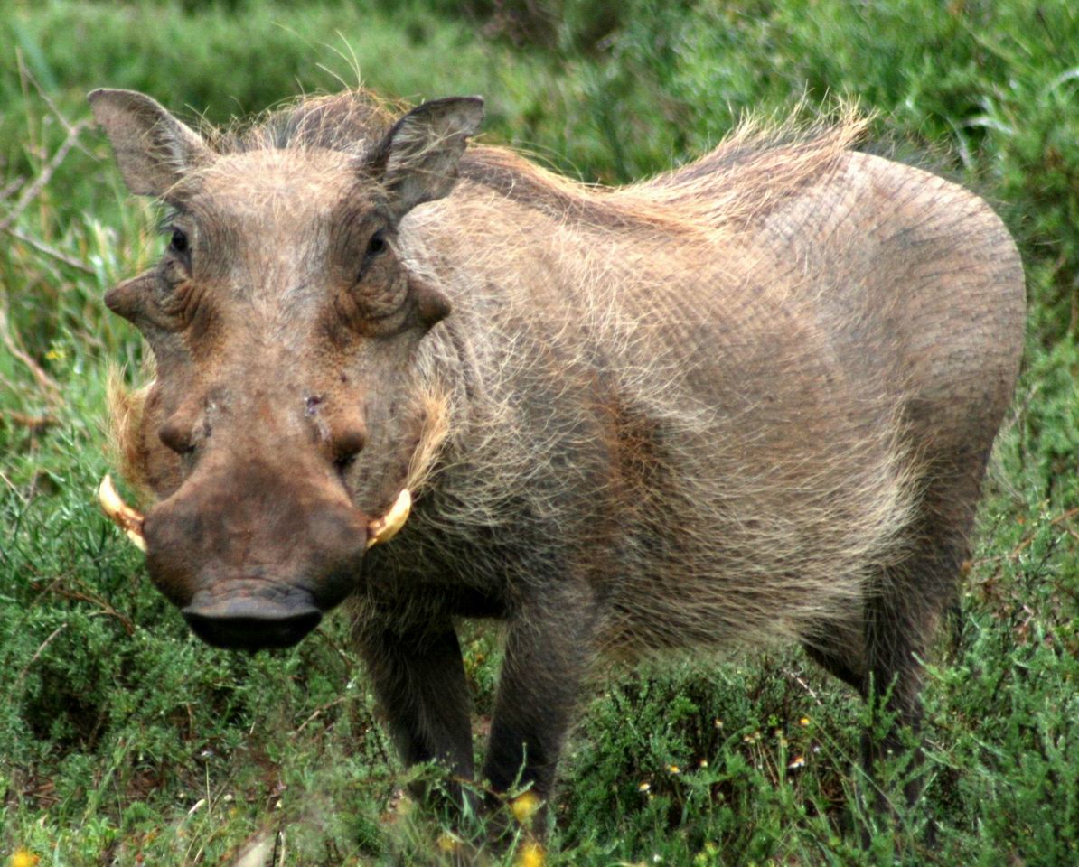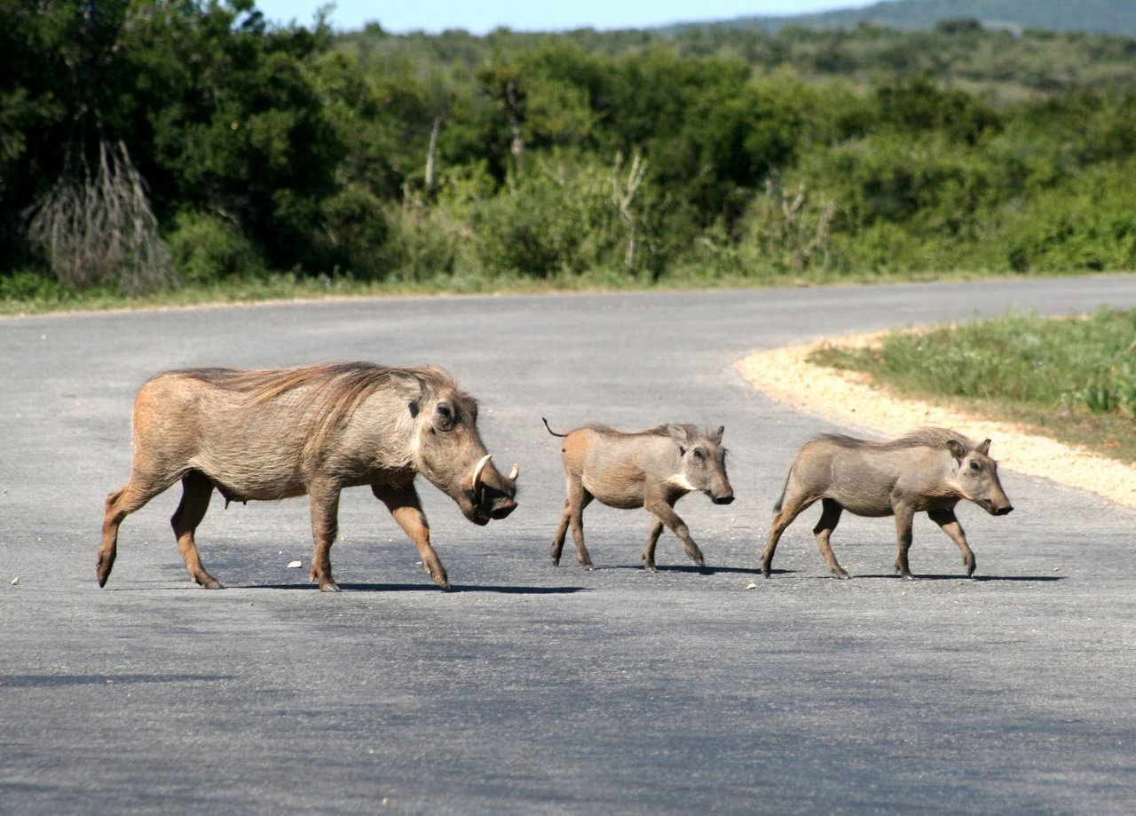 | The unique joy of a trip to Africa is a big-game safari. Once for the adventurous who would go into the wilderness for months tracking big game to shoot, a modern safari is as sedentary and easy to do as an ocean cruise. And very costly. At South Africa's national parks, the elephants, lions etc. roam free. You are able to drive around in the vast parks on paved or gravel roads, looking for animals, for just $30 per person per day, with chalets running about $100 a night. If you do it this way, as we did in Addo Elephant Park, you will definitely see wildlife -- deer, elephants, giraffes. But you would have to be very lucky to see a carnivore this way, and you will surely destroy your rental car if the roads are gravel. Still, at least this gets you into the park at a reasonable cost. If you can splurge, costs are from $225 per person per night at the cheapest private lodge (with electricity, ensuite bathroom with hot shower, 3 meals a day and two 3-hour drives near sunrise and sunset). For better food and deluxe lodgings, the price can easily quadruple before you even blink. Still, after nearly two months of being cheap, we "splashed out" and had a 4 night safari.
