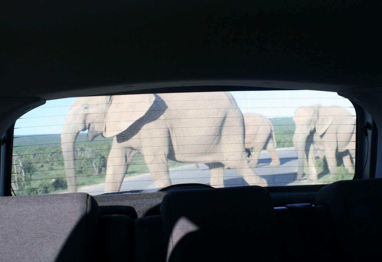 | Then off to Addo Elephant Park, which was great fun -- driving our own rental car through the many square kilometers of bush and meadows, we saw much more than we expected.