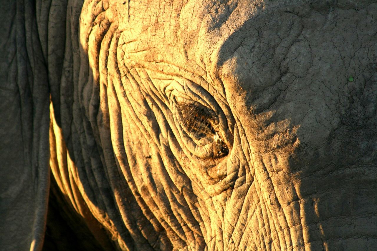At sunset a huge herd of elephants gathered at the big watering hole; young males butting heads, matriarchs keeping everyone in line, a whole society. |