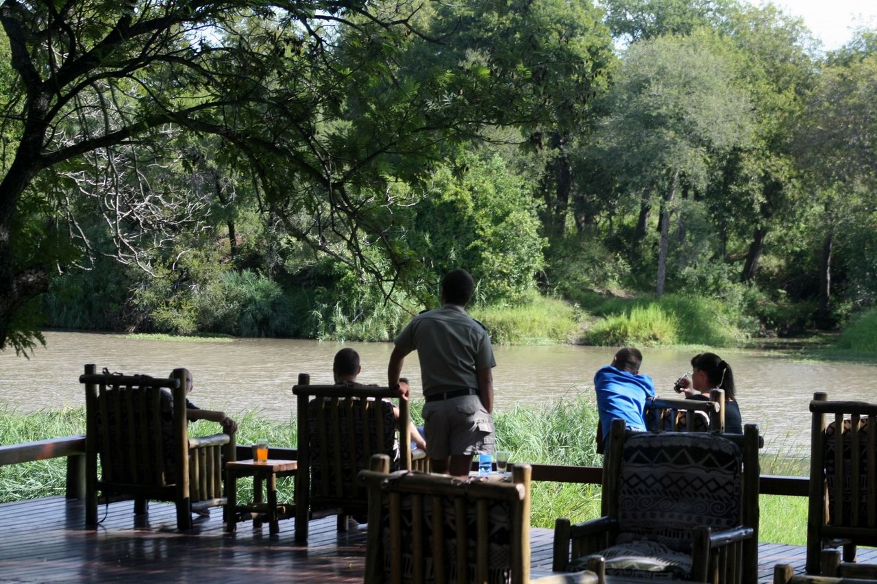 At Gomo Gomo you can watch the rhinos, elephants, baboons and even sometimes lions from the riverside viewing deck. |
