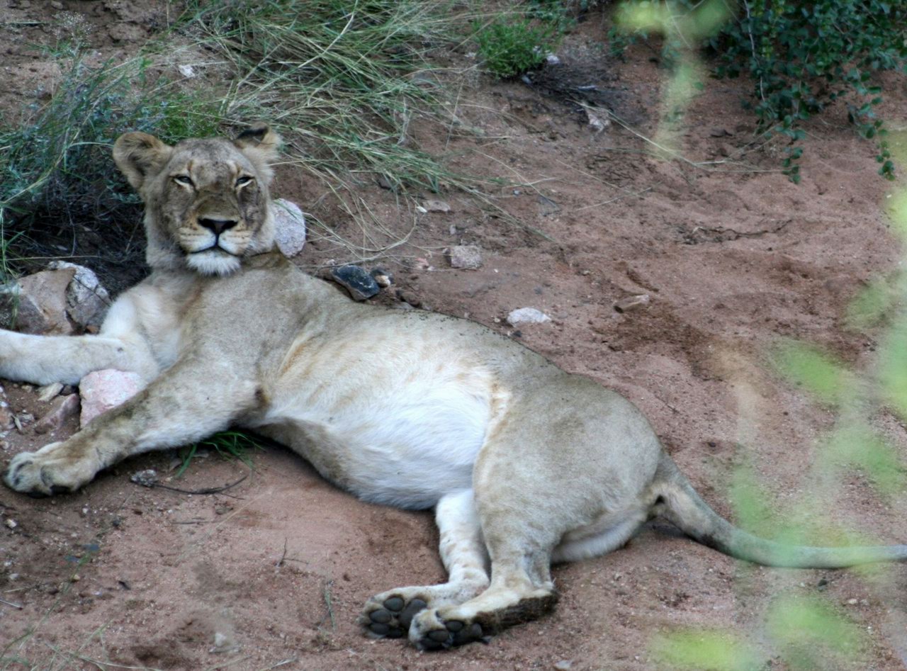 | There is a lot of "bush politics" as when, say, a lion is spotted on someone's property, all the rangers from each lodge try to negotiate to be allowed to enter that property to show their guests the sighting. The lodges in the south part of Timbavati are very coooperative and share nicely, but the northern lodge Gomo Gomo is quite stingy -- which they can afford to be since they have the best land, with much of the water (where the animals go to drink). So, for example, we were sitting about 5 m from a rhino in Gomo Gomo land when someone came on the radio and asked, has anyone seen the rhino that was around this morning -- our ranger did not reply, which seemed selfish to me. All the guests and all the reserves benefit if everyone sees the most animals they can.