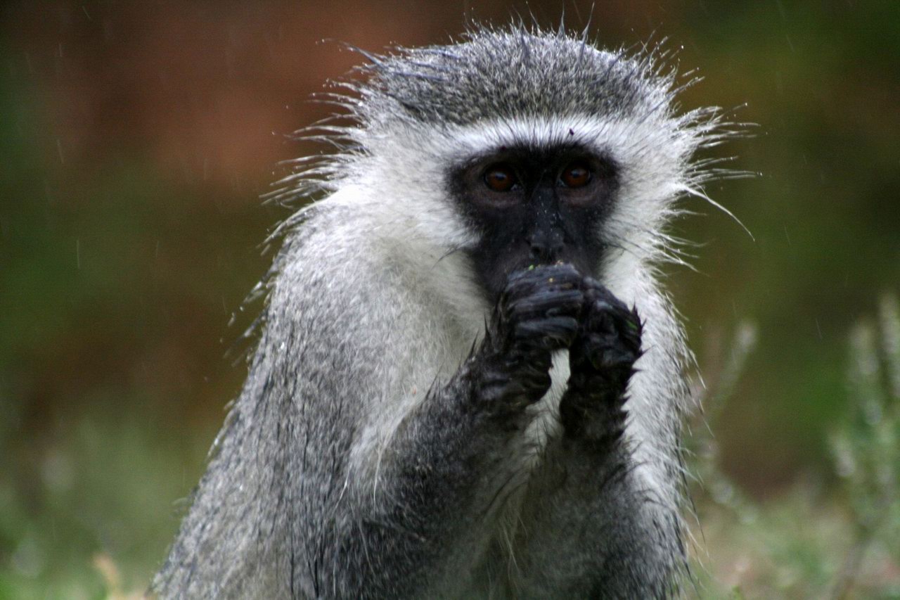 The next morning after a bit of rain, no one was out at all -- we saw only a few monkeys shivering in the dew. I suppose not even the elephants want to stand in the cold rain and hide under trees somewhere.