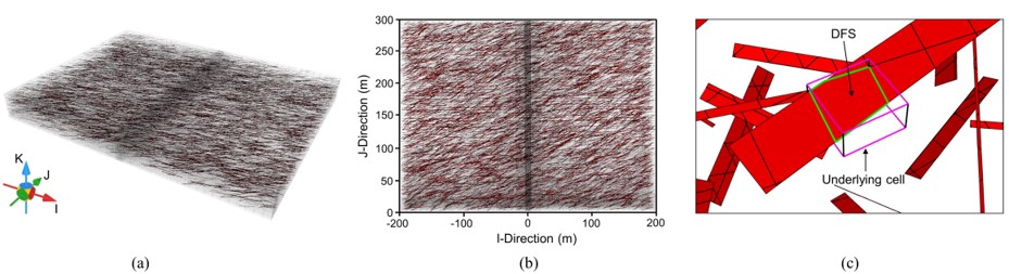 Our group is also developing efficient coupled flow-geomechanics simulation approaches for simulating multi-phase flow through models, discretized on unstructured grids, with discrete fractures. This research would have wide-ranging applications in hydrology, tight gas/shale gas/tight oil reservoirs, geothermal reservoirs, fluid storage (e.g., CO2) systems where fractures occur at multiple scales (micro, macro, and hydraulically-induced).