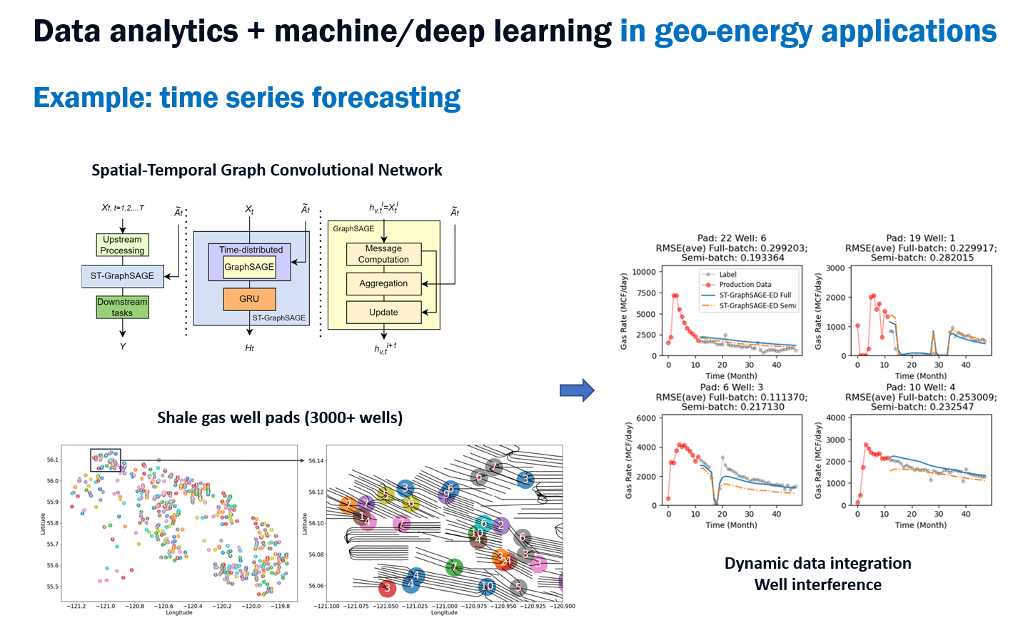 We combine recent advances in data analytics, machine learning, and artificial intelligence (AI) and our domain expertise to develop innovative data analytics techniques for practical subsurface (geoenergy) engineering problems, e.g., time series forecasting, dynamic (real-time) data analysis, uncertainty quantification, and model updating. The outcomes of our research are useful for the design and decision-making in reservoir management.Â