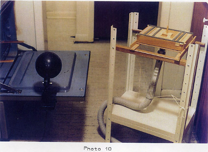 After a lamp is put in place (Photo 10) to enable observation of the "behavior" of the plastic in the oven; leather gloves to shield hands, stop-watch and required safety equipment are made ready we are prepared to enter the realm of art as it pertains to moulding.