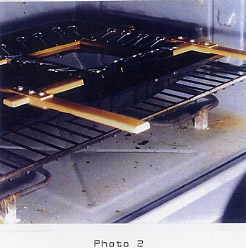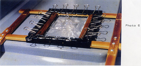 Just prior to this stage the vacuum is turned on. Now, quickly, remove the Frame from the oven and place it firmly over the awaiting mould (Photo 5).