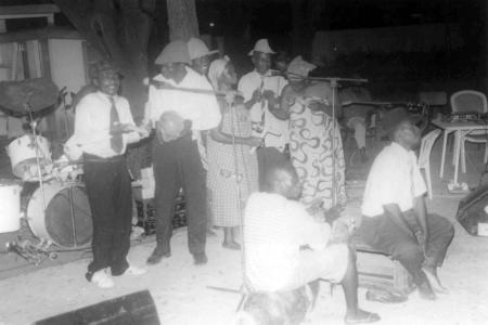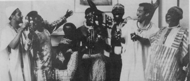 Ebun Clark (1979) refers to minstrel shows in late 19th century Lagos, whilst Nunley (1987) mentions an African Comedy Group in Freetown in 1915. Minstrel and vaudeville sketches became popular in Ghana around 1903 (personal communication C.M. Cole l996) and in 1918 (Sutherland,1970). Furthermore, between 1924-6 the African-American (or possibly Americo-Liberian) or Glass and Grant team was based in Accra that influenced Williams and Marbel of Accra and Williams and Nikol from Freetown. This local vaudeville or ‘concert party’ of the local elites rapidly became indigenised during the 1930’s by popular theatre groups like Bob Johnson’s and the Axim Trio.