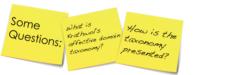 Krathwohl's affective domain taxonomy is perhaps the best known of any of the affective taxonomies. "The taxonomy is ordered according to the principle of internalization. Internalization refers to the process whereby a person's affect toward an object passes from a general awareness level to a point where the affect is 'internalized' and consistently guides or controls the person's behavior (Seels & Glasgow, 1990, p. 28)."