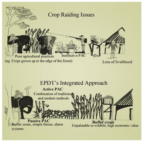 Their presence can cause widespread fear and they compete with villagers for resources such as wild fruits and water. Farmers usually have to protect their crops at night, an activity that is dangerous, reduces productivity, and increases the risks of catching diseases such as malaria.