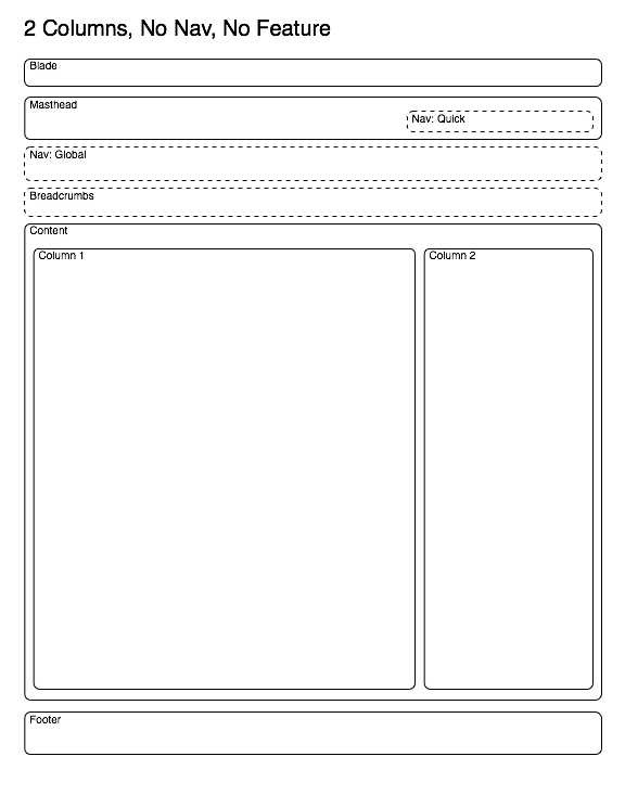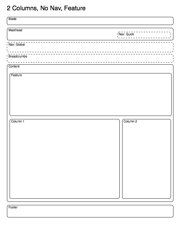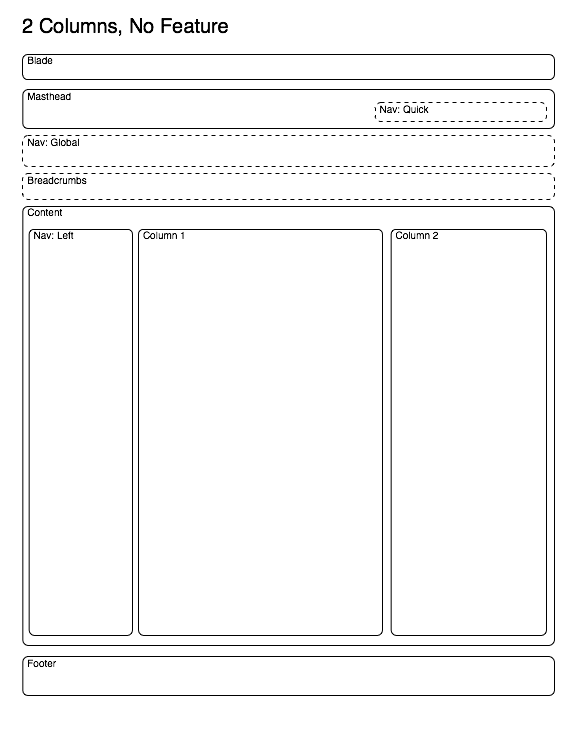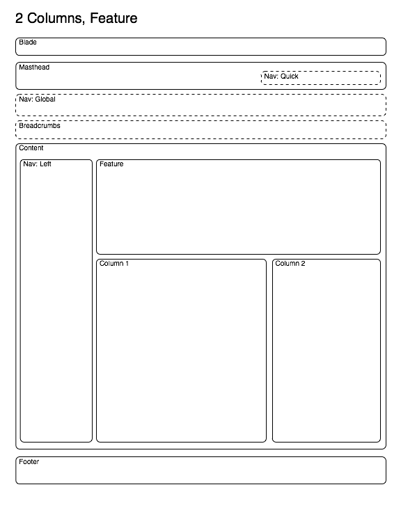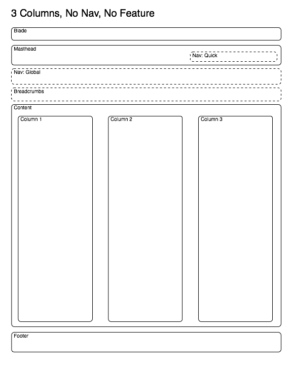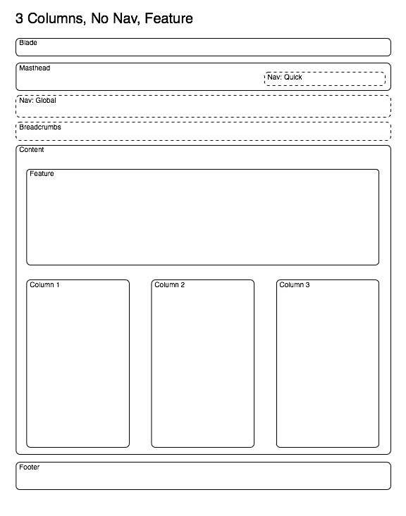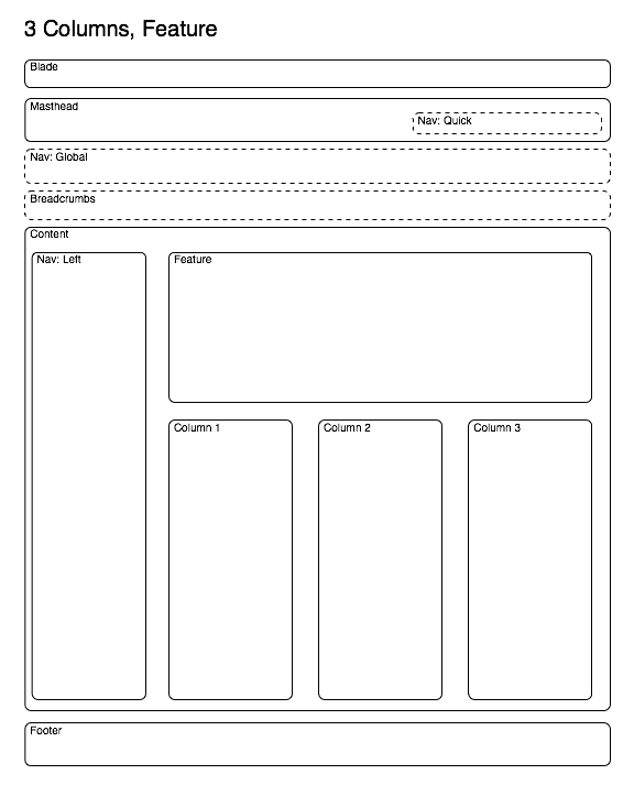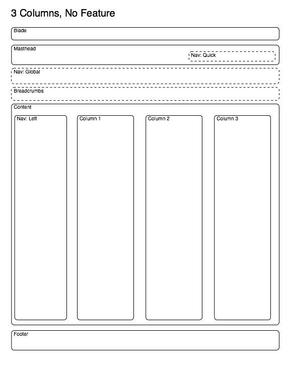 The UAlberta grid system must also fit into the Sitecore CMS. Our implementation of Sitecore currently allows for a number of variations on 1,2 and 3 column pages (not counting the left hand navigation column).