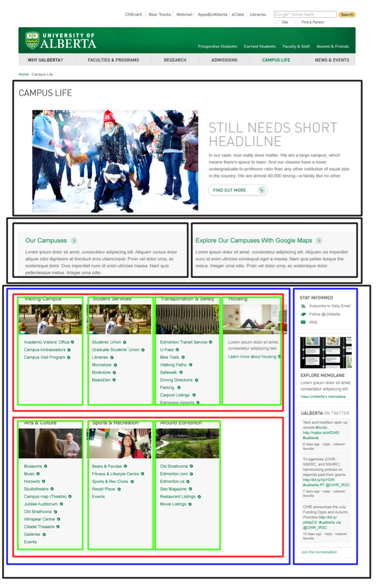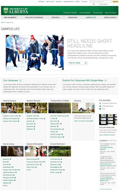 The UAlberta Campus Life page is an example of how a page can be styled in Sitecore using the UAlberta grid along with some jQuery and CSS.