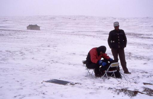 David Kay uploading long-period MT data at site TBT640 in the Songpan-Ganze terrane near the Lhasa-Golmud highway. May 1999.