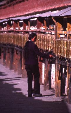 Prayer wheels on the Lingkor (outer pilgrimage circuit), Lhasa