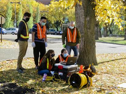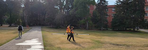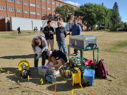 There are a number of different geological targets for the various surveys: sedimentary cross-sections, buried industrial features (water pipelines, electrical lines, sidewalks, near-road buried features), environmental (depth of water penetration, sedimentary layer disturbance), etc.  The student teams will be reminded of the basic theory behind the measurements, be taught how to operate various geophysical equipment, carry out surveys with this equipment, and perform basic analyses and interpretations. Successful course completion requires reporting the results in written reports (assignments) and an oral presentation. We will have a presentation session at the end of November. Make sure to take lots of photos for the poster and reports (downloaded photos from the internet will NOT be allowed).